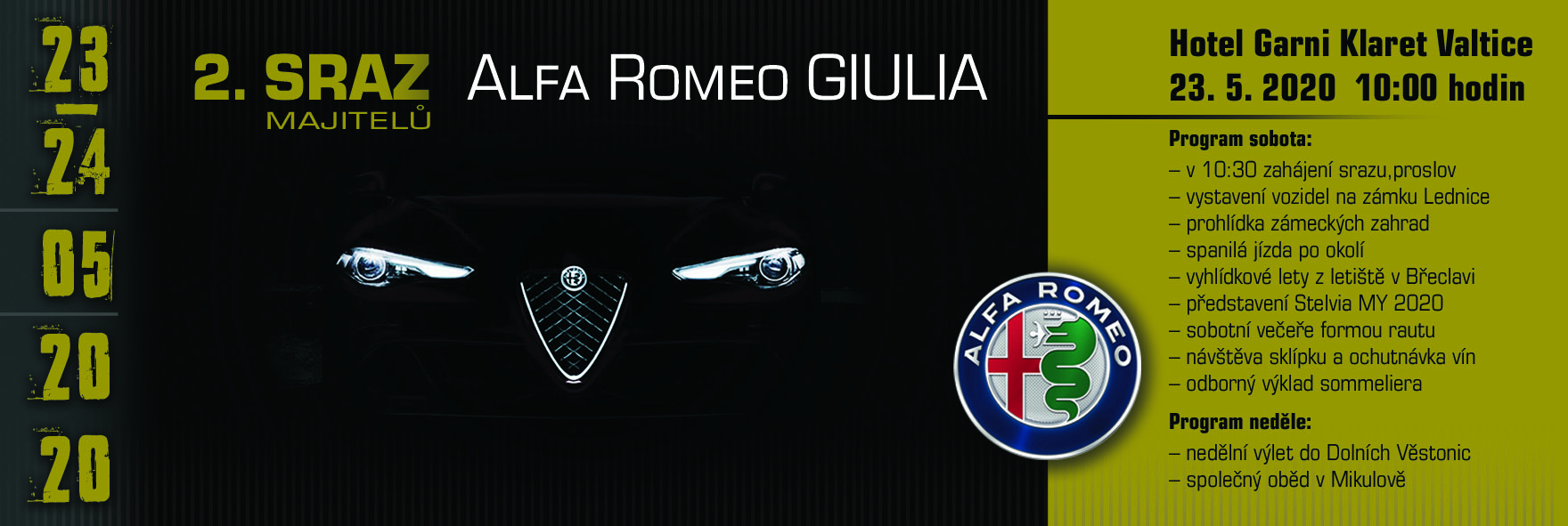 2. sraz majitelů Alfa Romeo Giulia proběhne 23 - 24.5.2020 ve Valticích
