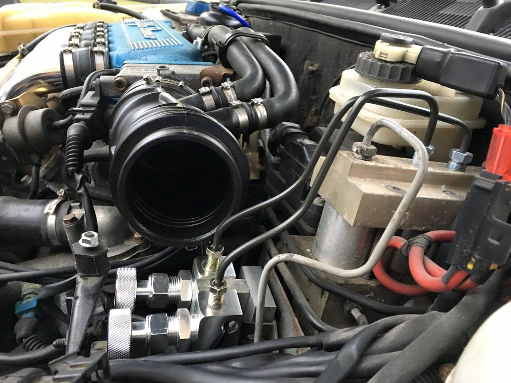 momentálně laborace s brzdama, dopředu jdou 4 pístky bremba, dozadu taky plánuju něco jiného místo současných 240x11. Místo původních jsou pancéř hadičky, zátěžový regulátor je venku, místo něj jsou dva kolečkový omezovače brzdného účinku. Dva jsou aby zůstala zachovaná funkce ABS, tahat brzdy na T systém se mi nechtělo. Regulace je pod váhou vzduchu, chycená v původním držáku přechodový kostky brzdových trubiček. Aby to co nejmíň mlátilo do očí a nikam jsem nic nevrtal. Na fotce jen přitažený bindrem, bude to samo srovnaný