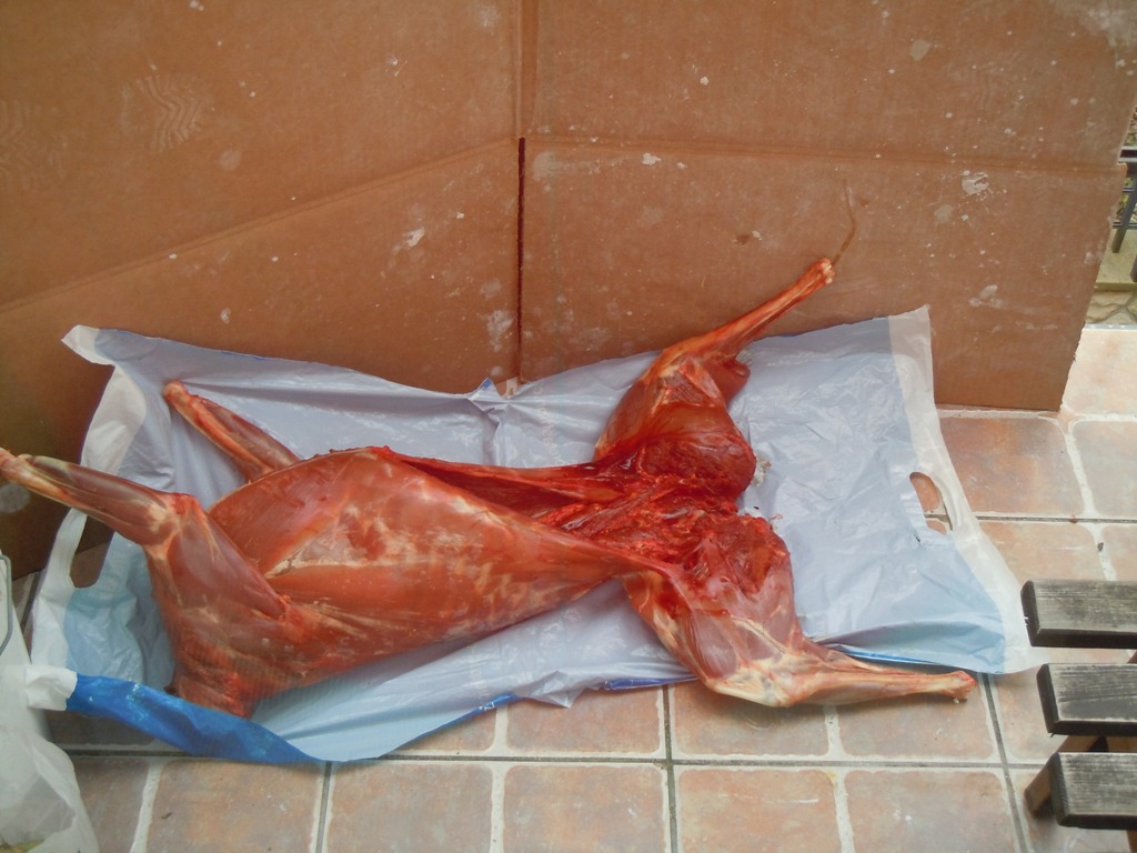 zde:otec je polovnik (myslivec)? lebo nie je to len tak vyvrhnut divinu a spravne ju "ulozit". divina ti musi zriet viac ako 24h aby bola pripravena na dalsie obrabanie...ale tak zajvne tata vie co robi kedze si to fotil uz za dna a vypada to ze je ok