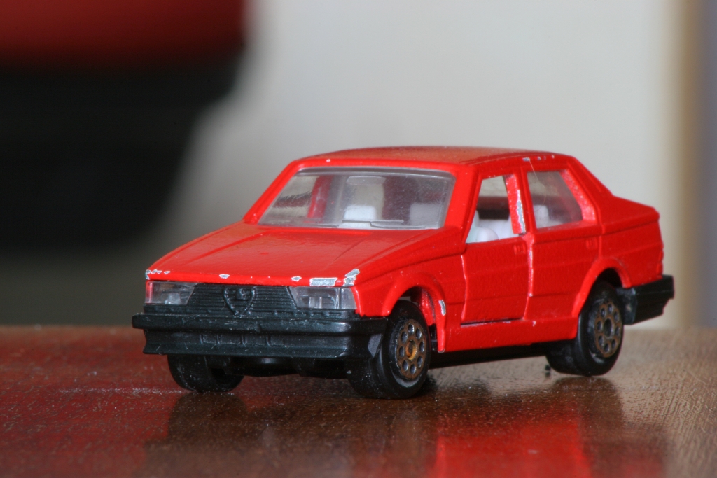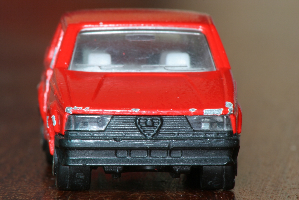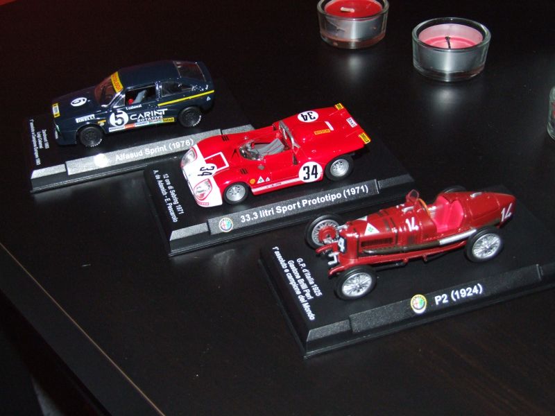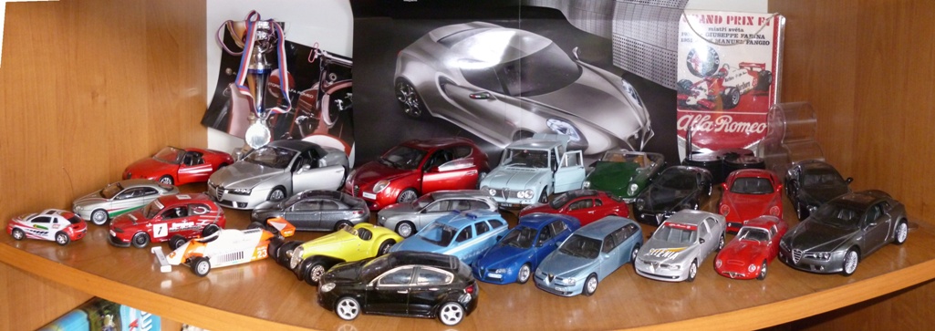 Tak sem si dovolil taky vyfotografovat ten jeden model Alfy co mám doma. Mám sice opravdu jen jeden a jenom v měřítku 1:55 (výrobce Majorette), ale zase už je to solidní veterán, dost možná vyroben ještě v době produkce jeho pojízdný předlohy :)