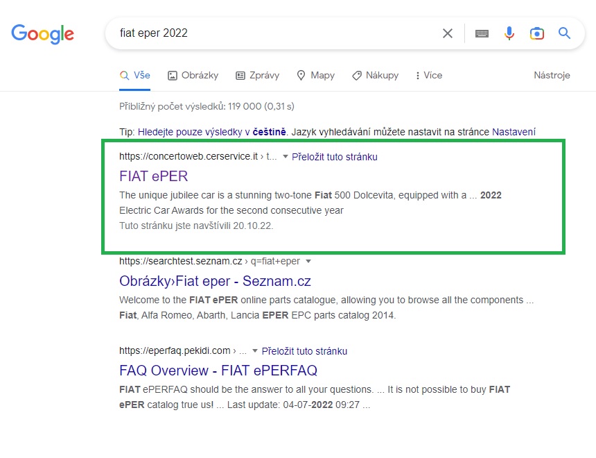 Zadejte do vyhledávače "fiat eper 2022" (viz. obr. níže)a přes první link se tam dostanete. Když bych sem dal skopírovaný odkaz tak by to po vás chtělo heslo