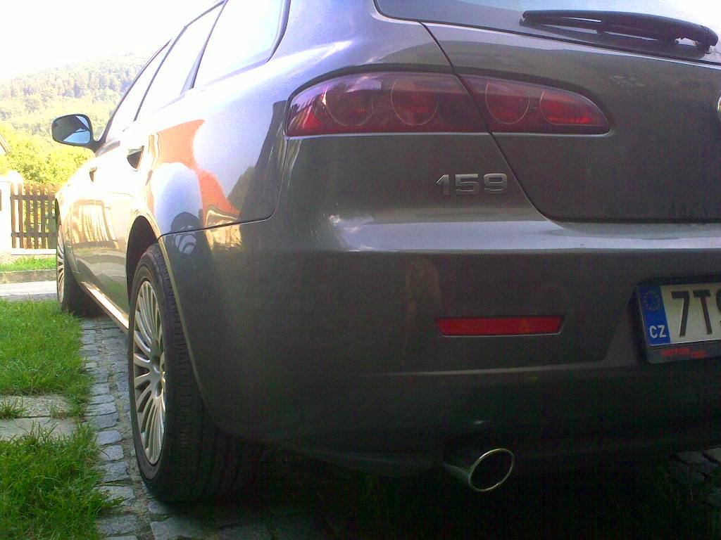 Tak mi včera přišla poštou koncovka, kterou doporučil Alfista "vlastne" ze Zvolena. Je to opravdu pěkný kus hardwaru (cca +0,5 kg), žádné bláto a sedí přesně na 159. Za 600,- Kč to byl super kup.