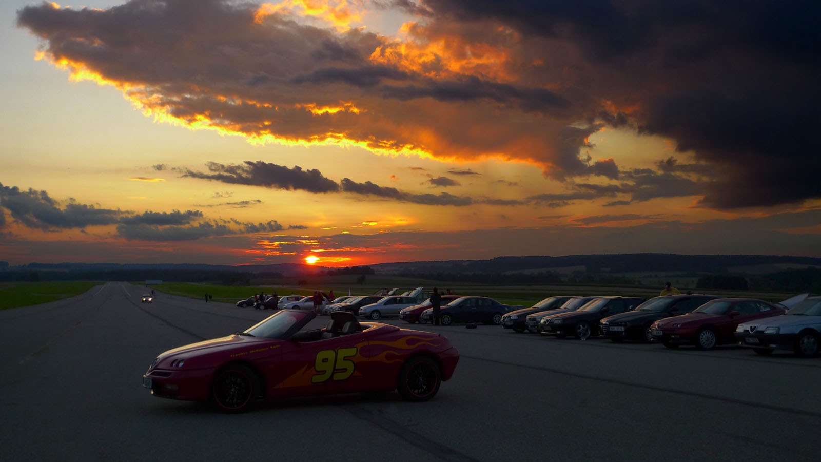 Sraz super,počasí objednané,účast hojná,alfičky přežili bez úhony.Škoda trochu zmatků v řazení na první ostré jízdy,později vyřešeno a pěkně to odsejpalo.Klobouk dolů ,,žlutým,, alfistům.By mě zajímalo,jak naložil Kubas s dortem za nej alfu,pokud ho dovezl domů v celku.