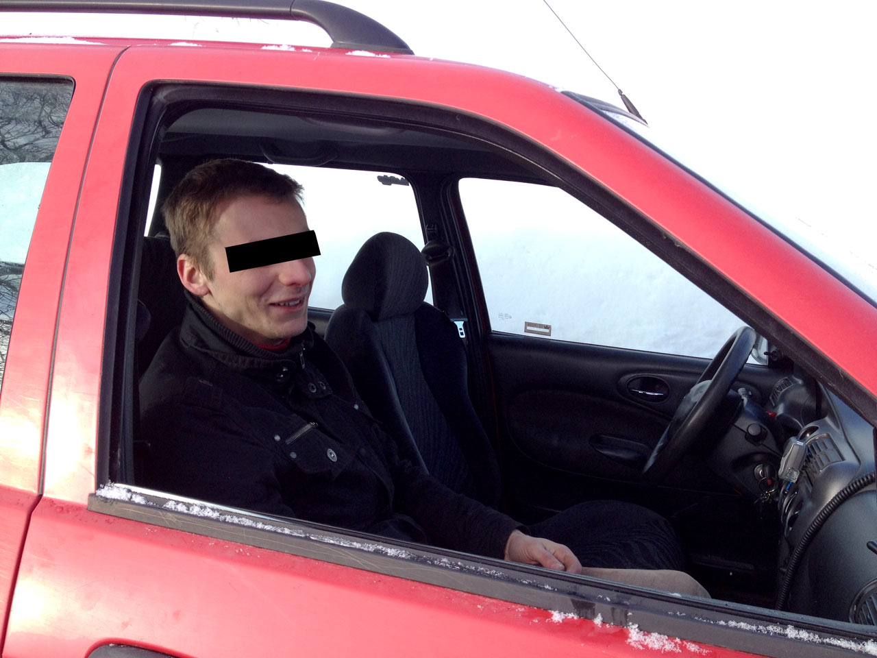 Zdenda zatahl rucku ( u spolujezdce ) a uz to bylo
