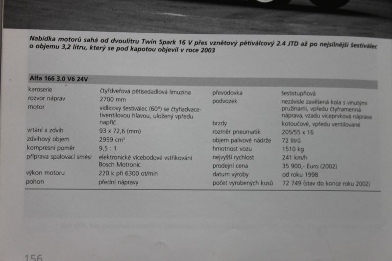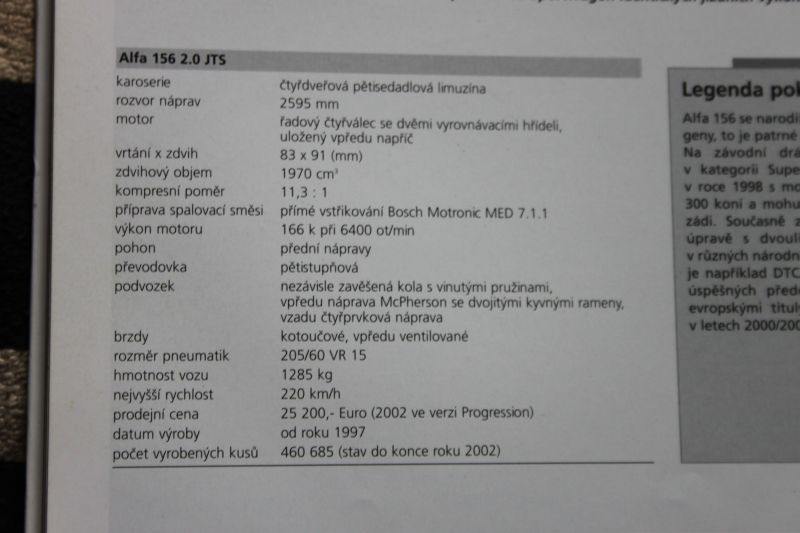 156 GTA 3.2 selespeed....1485kg../ 250koníků--čili o 70kilo víc než GTV 3.0 V6..