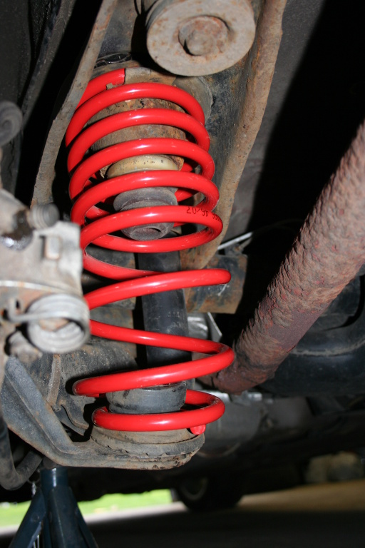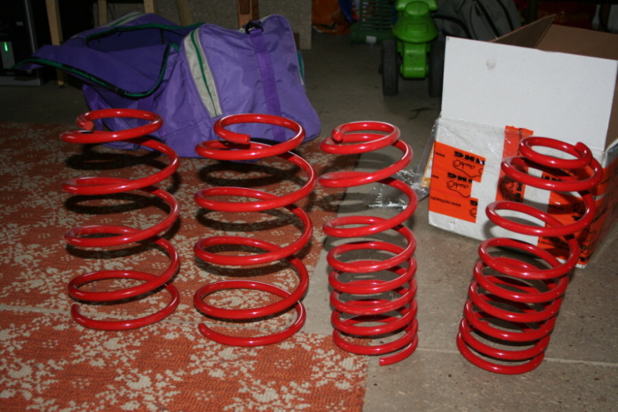 a ještě další nová věc, konečně jsem si udělal radost, po těch letech, a objednal pružiny, a alfina teď sedí níž a konečně jezdí jak motokára, i když jsem čekal, že to bude horší, ale není to tak hrozný a hlavně se to už tak nehoupe a nenaklání, už tam těm tvrdejm tlumičům bylo smutno, tak jsem jim přidělil společnost: