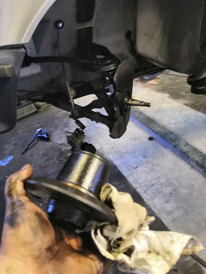 Hotovo,podvozek je v cajku,brzdy také... Ložiska,vůle vše hotové:-). Dostala na zkoušku novou vazelínu do 150stupňu kterou používají u nás borci na návěsy...:-)