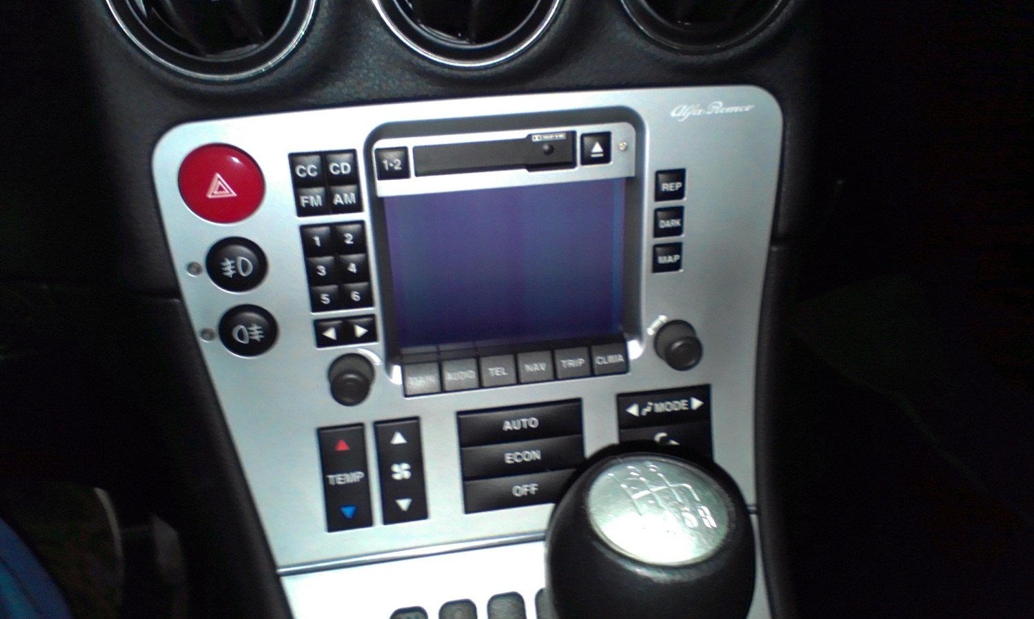 cca po pul hodine jsem sedl do auta. otocil klickem. Display tak 5s zobrazoval normalne, pak se objevilo nekolik bilich pruhu pres display a vse zoodbrazeneho se zacalo ztracet. Samozrejme, zadne jine skupiny (nav, audio....) nesly prepinat.