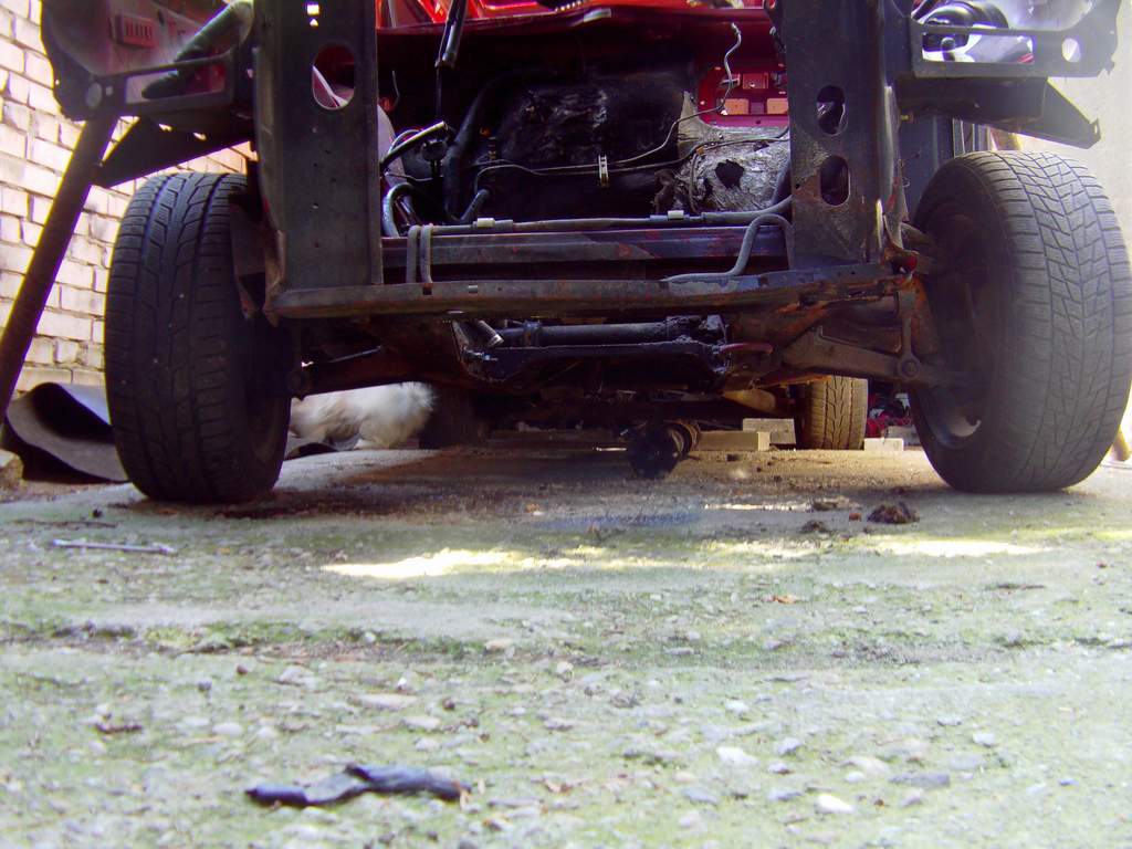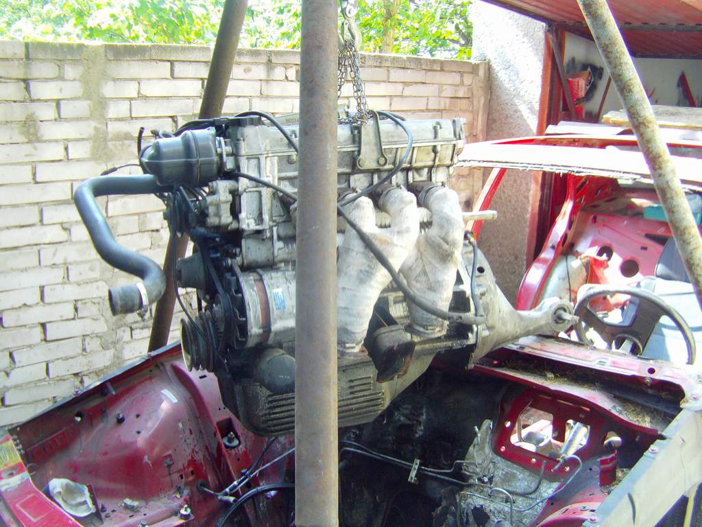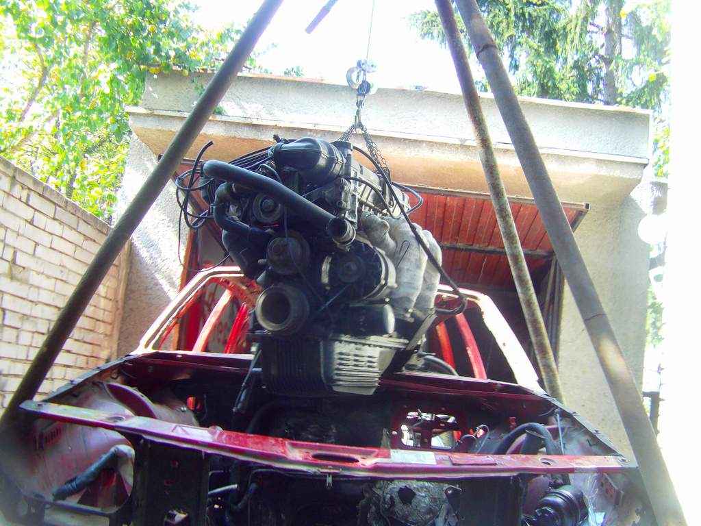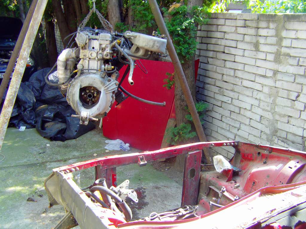 Takze dnes KONECNE bolo pacientovi odobrate jeho cuore sportivo, a to bol zaroven jej posledny organ na odobratie. Pacient je mmt drzany v umelej kome, z ktorej ked sa preberie tak dufam ze bude majitelovi, alias mne :D dobre sluzit. Motor sa nakoniec tahal aj s kardanom, ale po miernom podvihnutu agregatu sa podarilo tu "kralovsku hriadel" odpojit od zotrvaku a motor uz siel vonka jedna radost. Na aute ostava uz len zadne sklo, a ked sa aj to vyberie, tak mam ciste zelezo. Musim si rozmysliet resp. musia ludia co tomu rozumeju doporucit ci pieskovat a ked ano, tak si musim zistit ci peiskovat s napravamy atd atd...