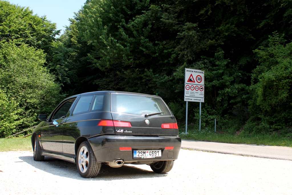Zatáčky jsem si užil hlavně od břehu di Gardi z Torri del Benaco do Marciagy po SP32A a SP9, když jsme jeli lézt do Marciagy. Cestou do Marciagy jsem viděl nádhernou červenou AR164, ale nebylo kde zastavit.