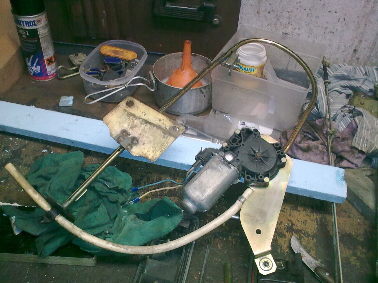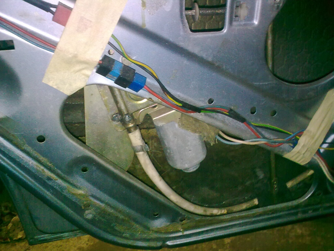 Možná někoho bude zajímat, jak mám udělané elektrické stahování oken na zadních dveřích, tak sem tu stahovačku vyfotil. Při blízkém pohledu jde vidět, že to není originál a že je to předělané z nějakého auta, ale celkem fungují