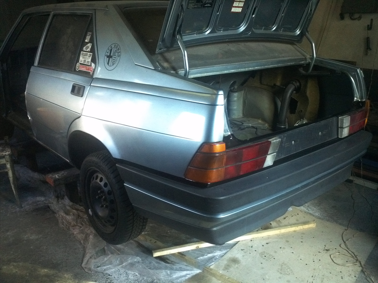 Takže Alfa je už zpátky v dílně a pomalu se na ní maká. Už jsem dával dokonce i motor dokupy, nasazené a dotáhle sání, nasazování svodů a při dotahování ejhle....... oba dva štefty jak jsem měl fouklé to těsnění na 4. válci tak jsou strhlé.... takže všechno jsem musel zase shodit dolů. Nyní čekám , než mi tatík donese pořádný závitník a zkusím to projet a dat tam ještě delší štefty. Jestli to ale nebude stačit, tak se to musí převrtat a hodí se tam desítka šteft s otsazením na osmičku... no to je prostě radost makat. Při této příležiotosti už kituji lemy a další nedostatky.