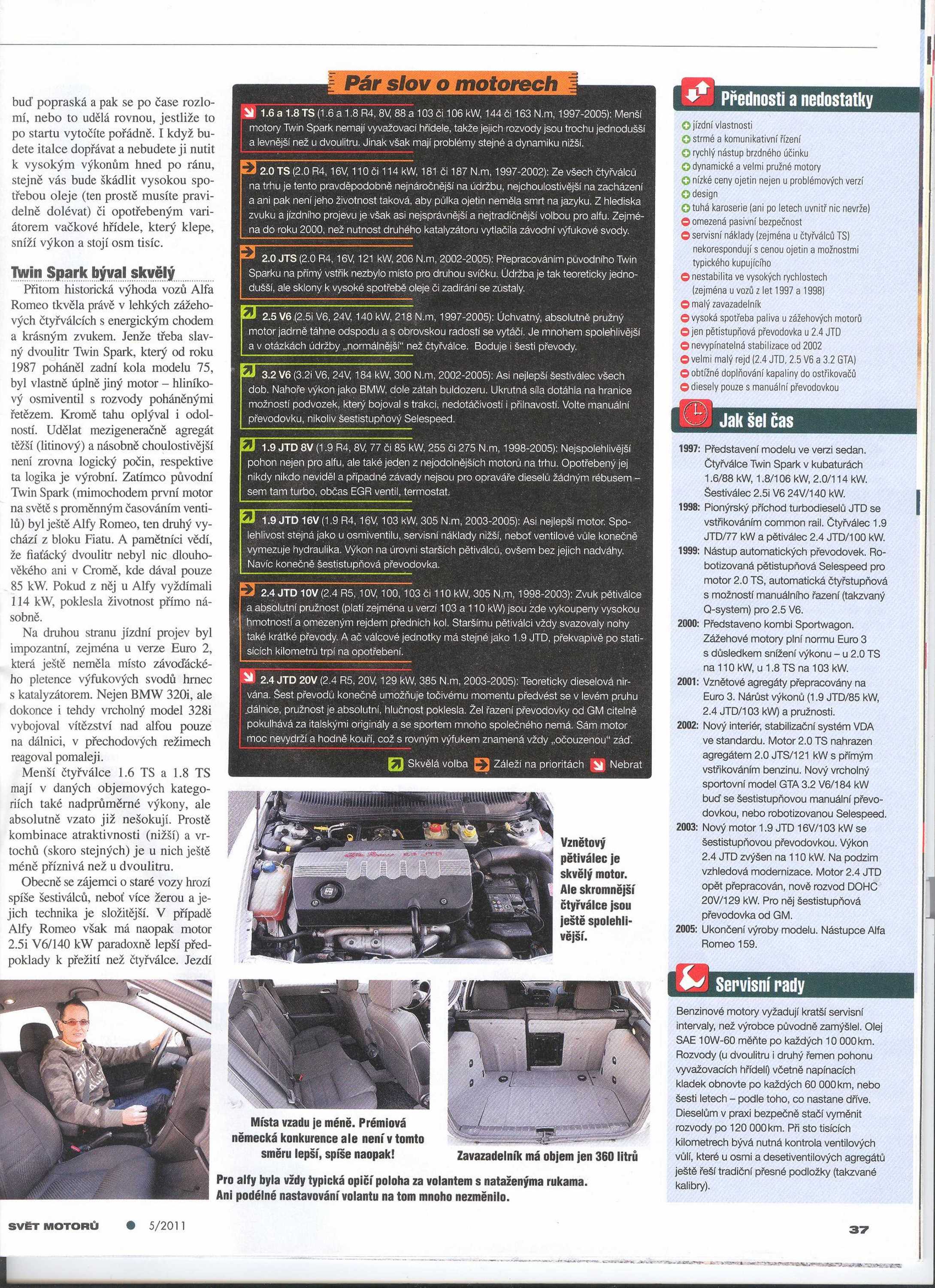 V novém čísle světě motorů v sekci bazar se rozebírá alfa 156 a konkrétní model 2,4 JTD.Recenze kupodivu vyznívá přívětivě