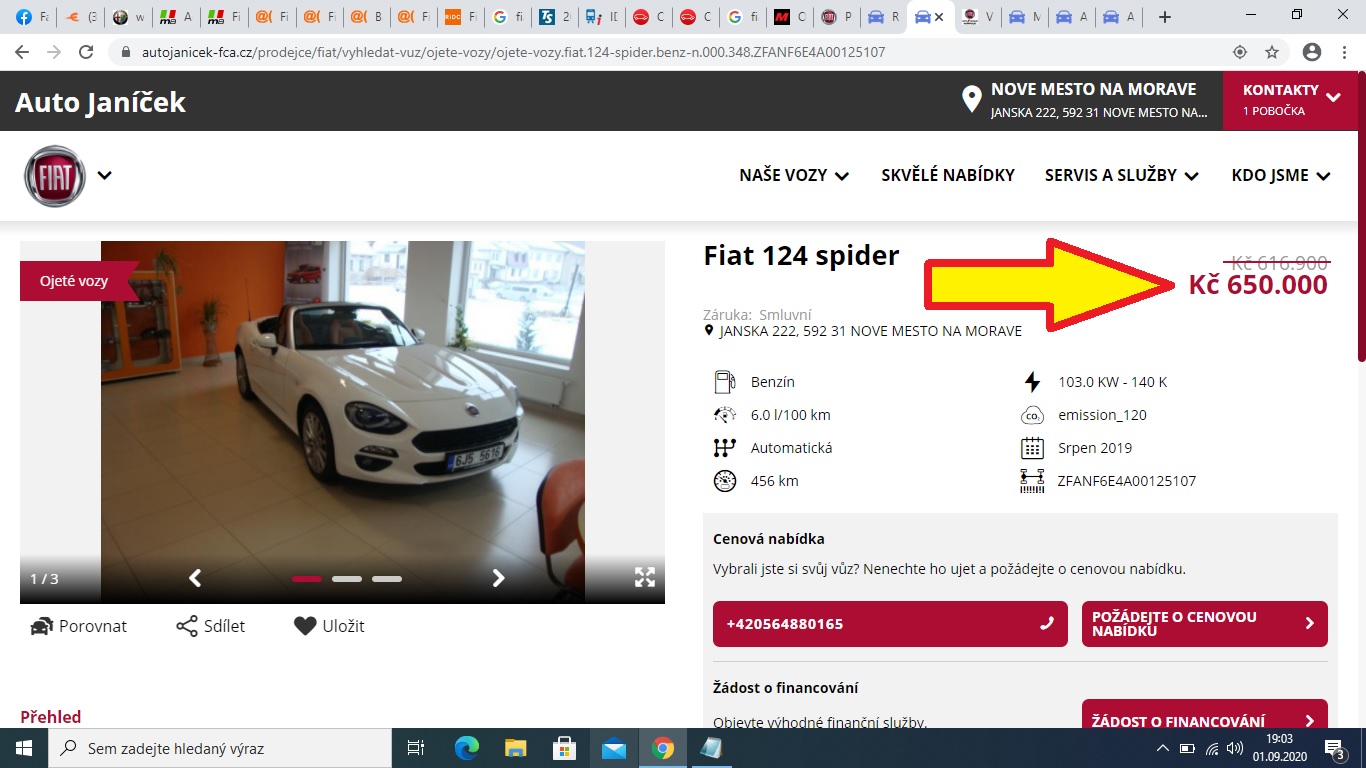 Nedávno skončila výroba a cena Fiat 124 Spider už jde nahoru...