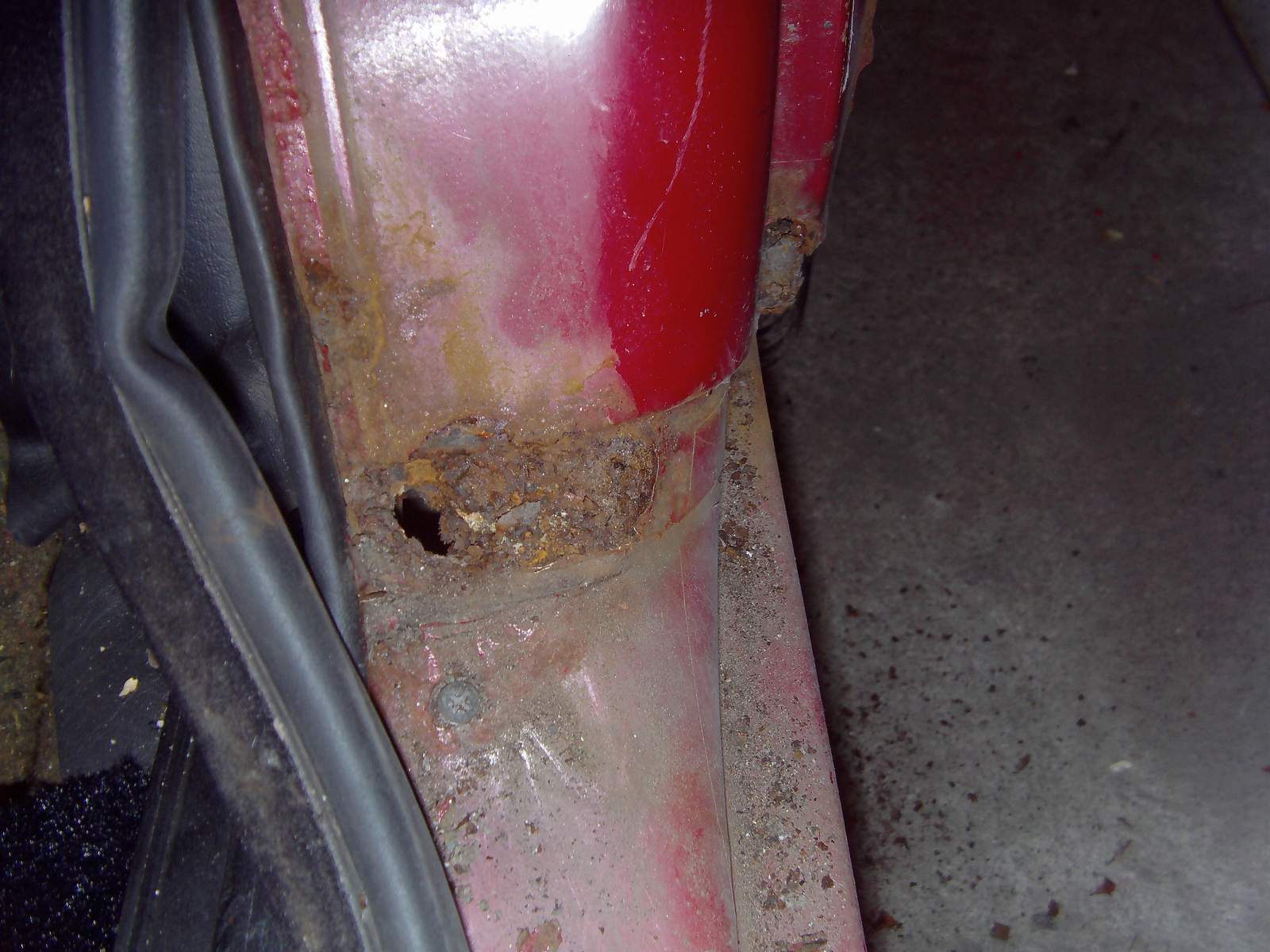 Podlaha na prvy pohlad nevyzera najhorsie, ale obavam sa ze ked sa este zoskrabe ten origo gumoasflat alebo co to je, tak sa uzke v plnej krase. Co su tie styry diery zakrytkovane na vyzametanie bordelu, tak kazda jedna mala ten stupel zhnity a okolo kazdej diery prehnite, najhorise to je u vodica, tam je ta diera oproti originalu aj zvacsena :???: a potom este nejake diery su, tiez vpredu.