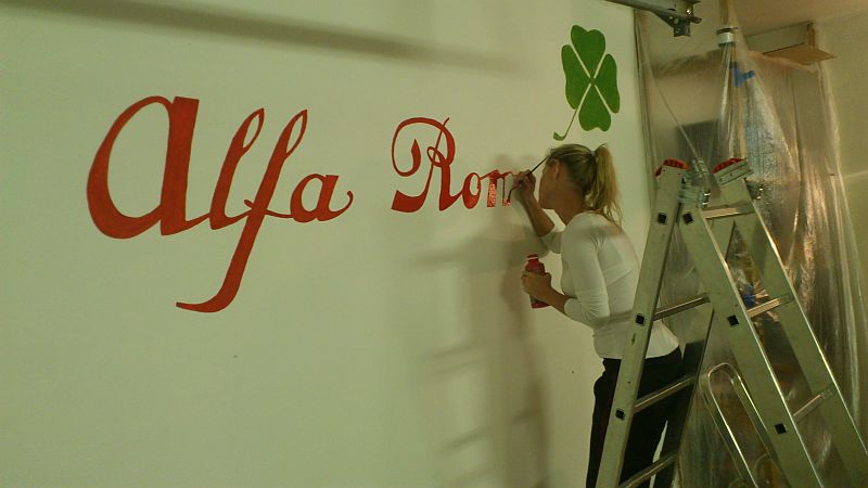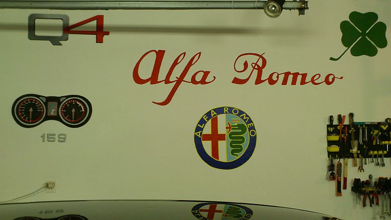 Garáž s logama Alfy,vše ručně malované
