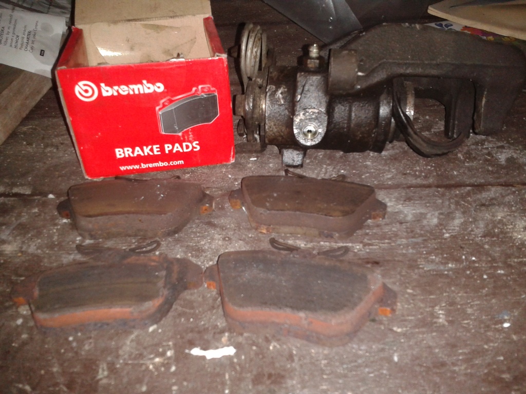 ..tak prostě ten třmen je vadnej, podltakem zpět nevrací pístek - nechápu :shock: Pro zajímavost jak dopadly destičky po cca 3rocích. Spodní pár, pravá strana - ta špatná a horní levá v pohodě. Krabice je samo od funglovek který jsou tam teď. Vyměněno za jinej odvzdušněno se zapnutým klíčkem a vše funkční, poměrně jednoduchá práce vše šlo krásně povolit...díky za rady :smt040
