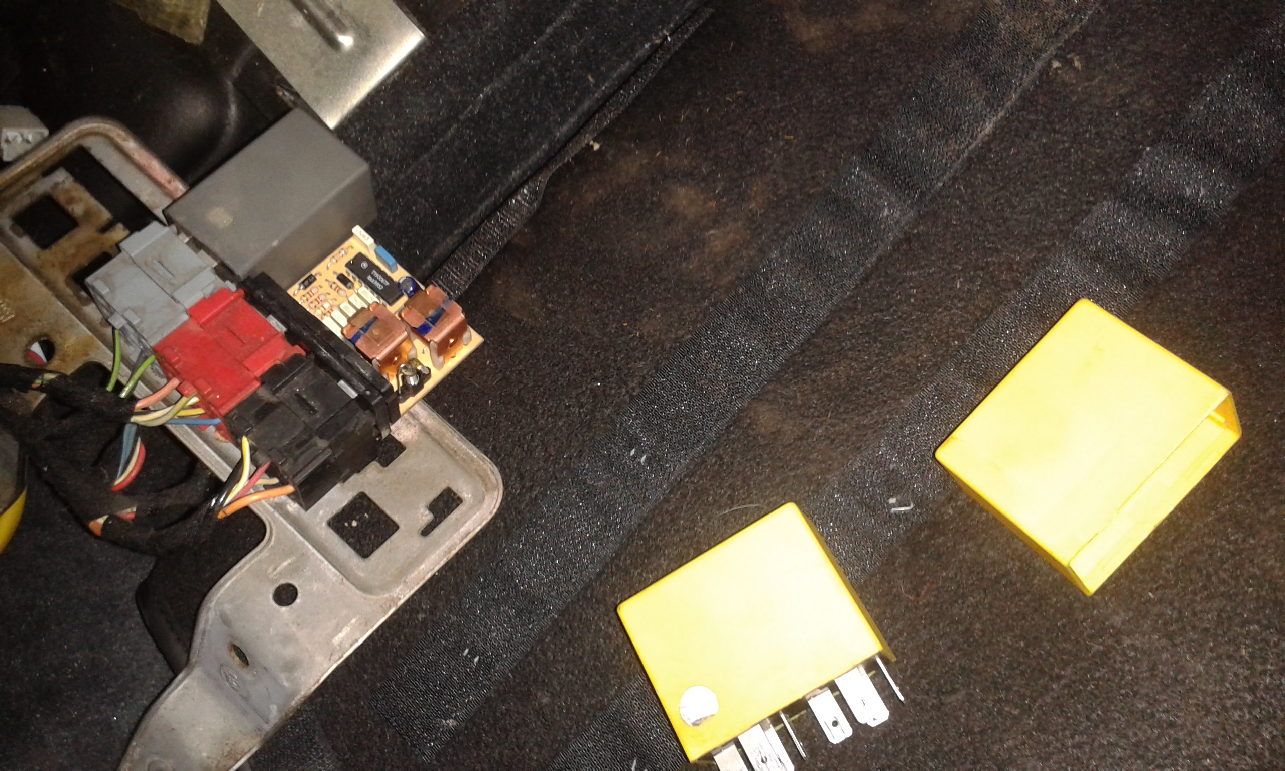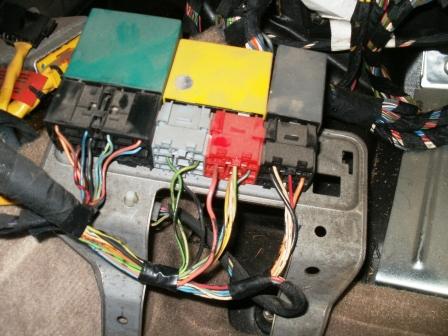 Jak to vzniklo? měl jsem všechna rele vyndana. Zelene, pro kontrolky blinkru mám odsraněné trvale. V konzoli mám tedy tři kostky s piny. Nejprve jsem osadil šedé rele(stmívání interieru) intuitivně do šedé kostky. CHYBA!!! Patří do černé. Zbyly černá a červená vedle sebe, a do nich, světe div se pasovalo žluté rele