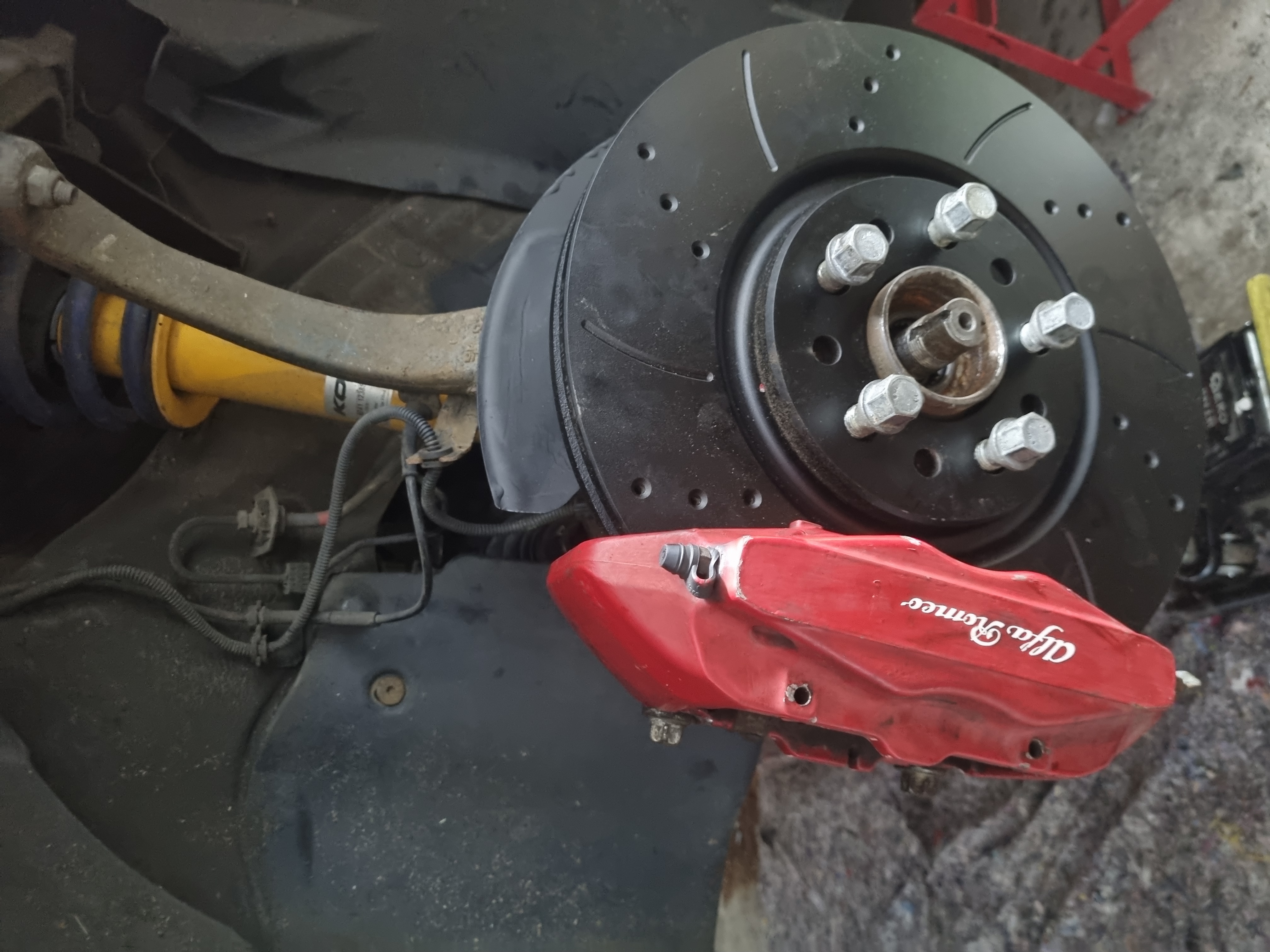 4 pístkové 330mm brzdy vpředu + výměny těhlic