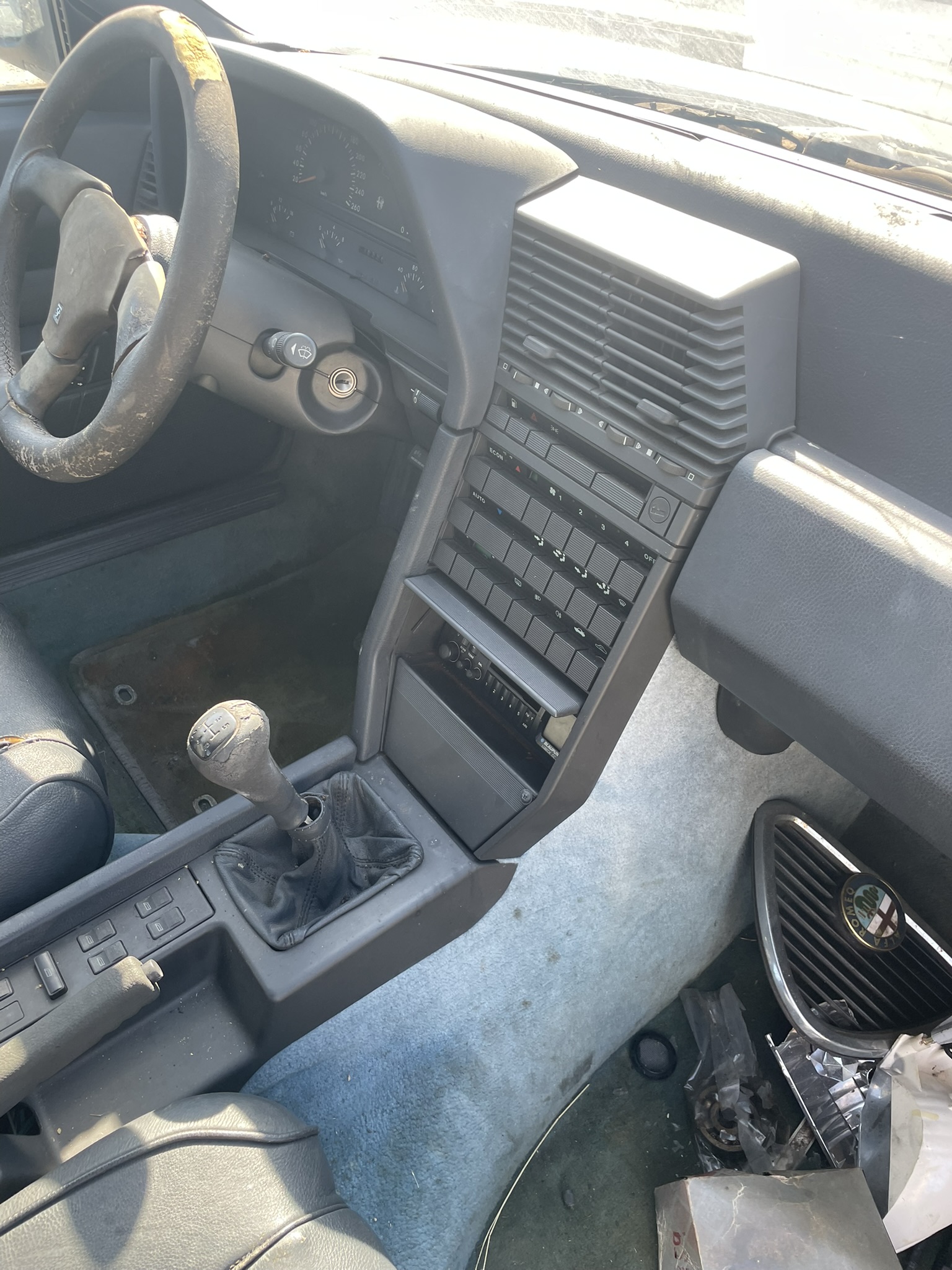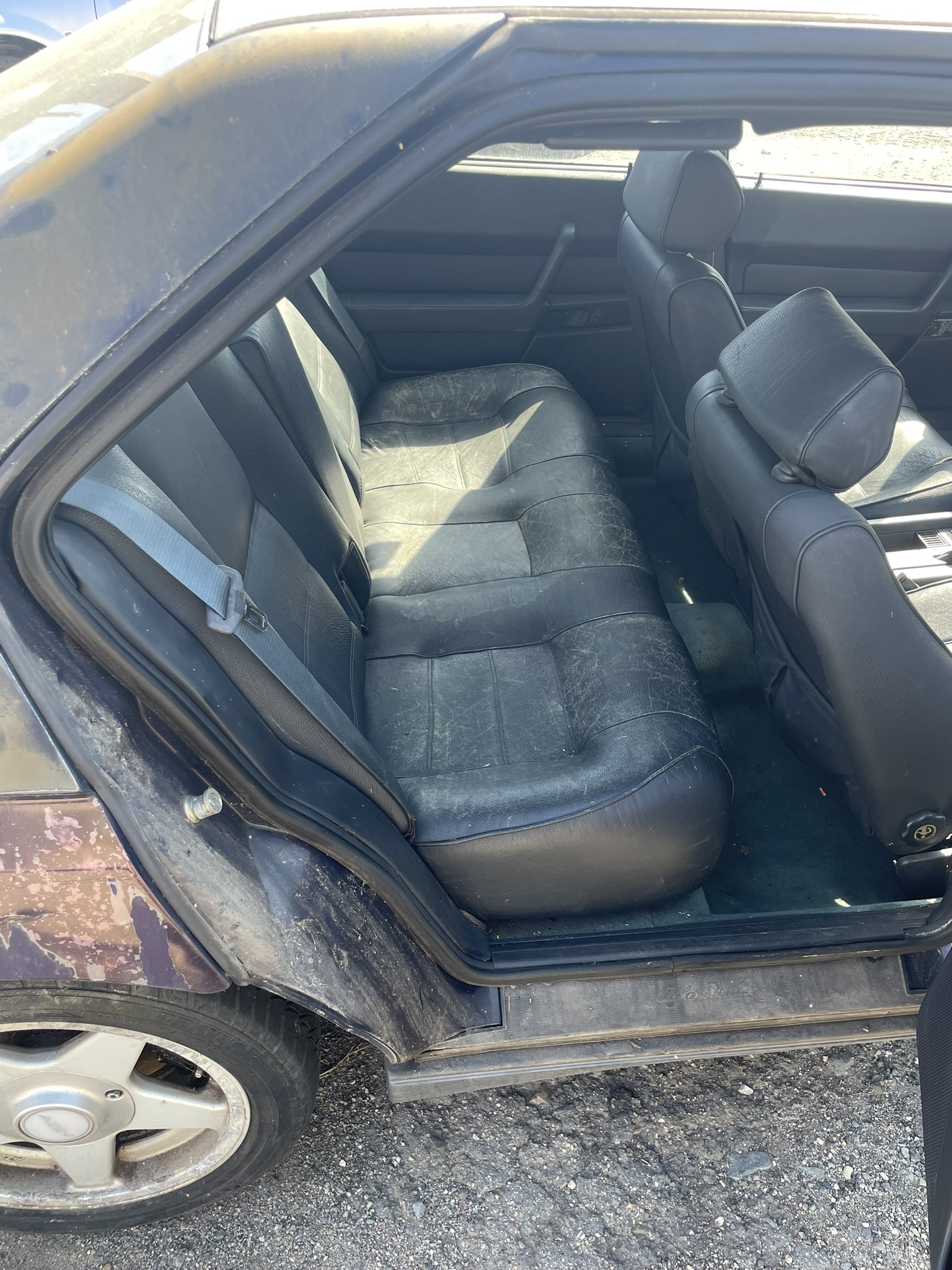 Aktuálně mám je fotky "před" a ty jsou docela děsivý. Motor vylepšený o záchodovou trubku, vybydlený interiér s myším hnízdem, domorobo oprava podběhů. Auto mělo z výroby klimatizaci, část klimy v interiéru je v pořádku, v motorovém prostoru naopak všechno chybí. Klimakompresor ani trubky nejsou. Ale motor jde protočit a karoserie kromě amaterské opravy podběhů vypadá zdravě. Nechybí ani plechové kryty podběhů vepředu a vzadu