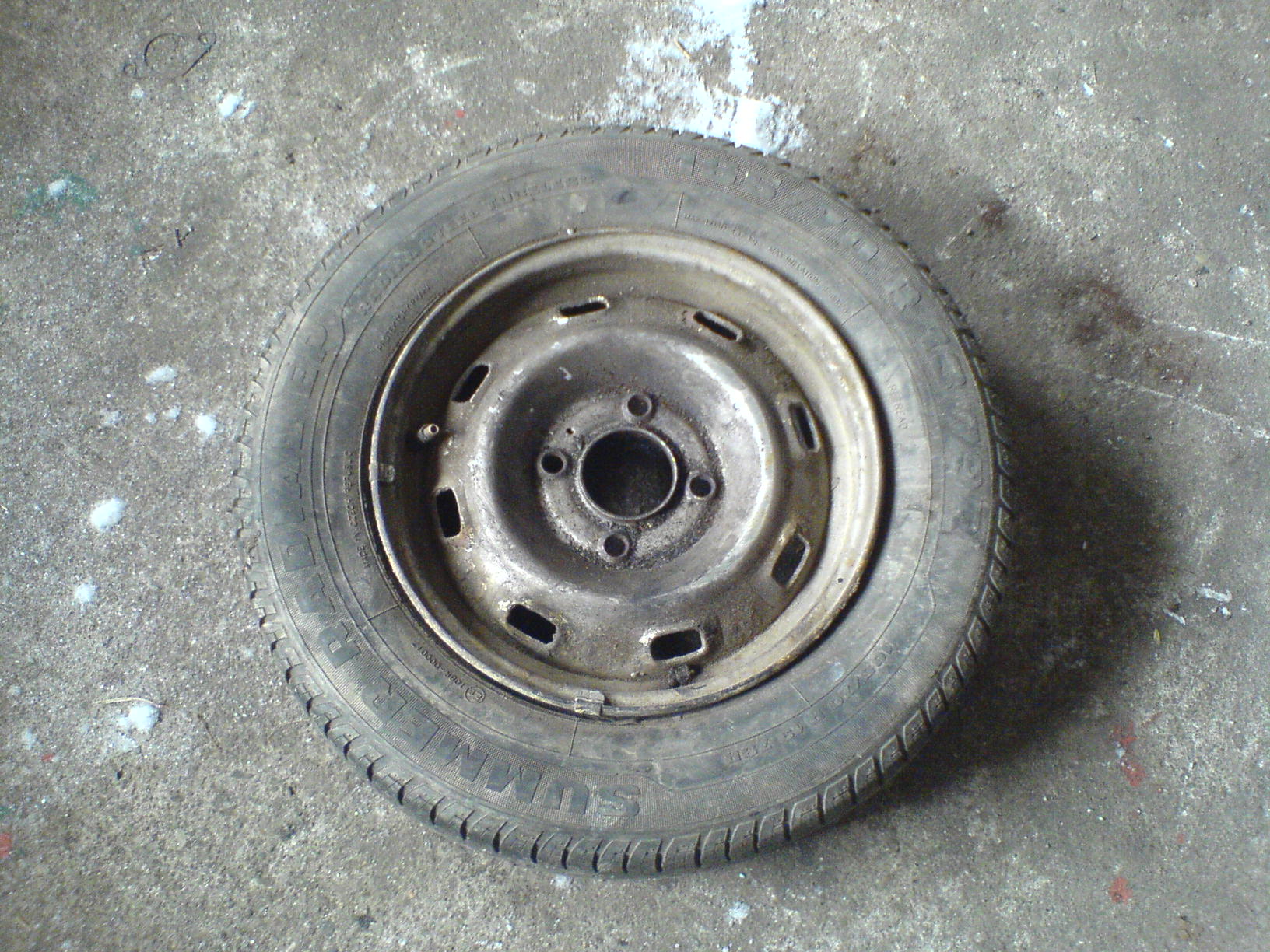 starej orezlej plech se sjetým pneu peugeot 205 13ka s rozměry 165/70 váha 11Kg