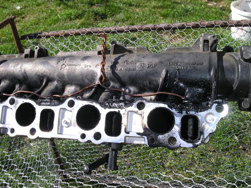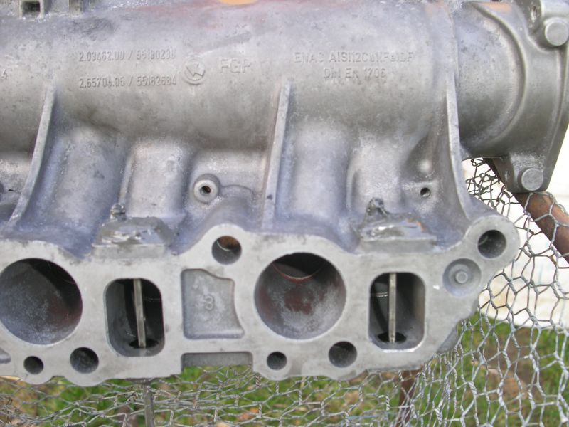 Použité sání jsem sehnal levně, protože vířivé klapky byli KO. Klapky jsem odšrouboval a osky zalepil zpět hliníkovým epoxidem. Nové těsnění mezi sání a hlavu se dá na netu koupit pod 500.