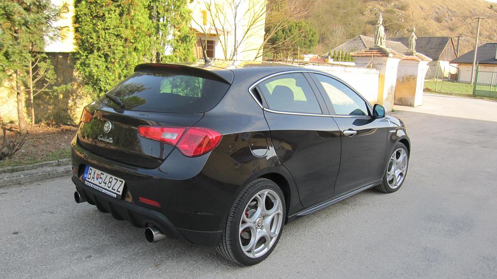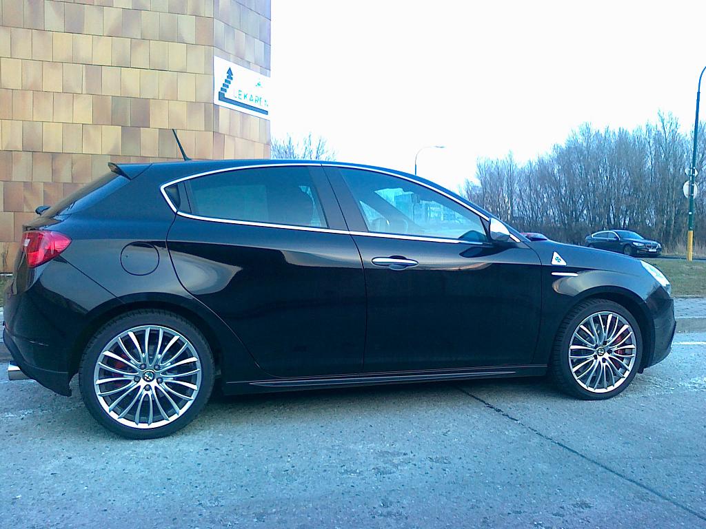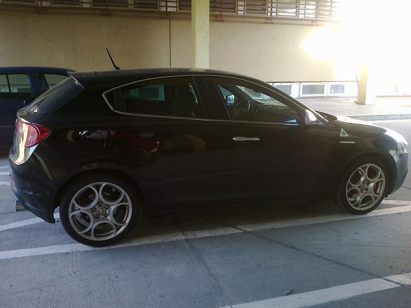 tak vidím, že fotky Kubas už zverejnil, mne to nejde, dakujem:-)...auto je vo farbe nero etna metalíza, kúpil som ho v auguste 2010...objednávka apríl 2010, čakal som 15 týždňov...motor 1742cm 2/172,50kW/234 cv, maximálka 242km/hod...najazdené zatial 13000 km, tie kolesá 8C su letné, tie paprsky su na zimu..investoval som do dvoch sád, kedže kôli brembo brzdám tam plecháče nejdú a 17tky stáli rovnako dal som prednoť 18tkam aj na zimu...zadný spojler medzi výfukmi som kúpil a dal nainštalovať podobne ako koncovky vúfukov..všetko originál doplnky Alfa Romeo...vyzerá to podstatne lepšie ako tie malé koncovky ...