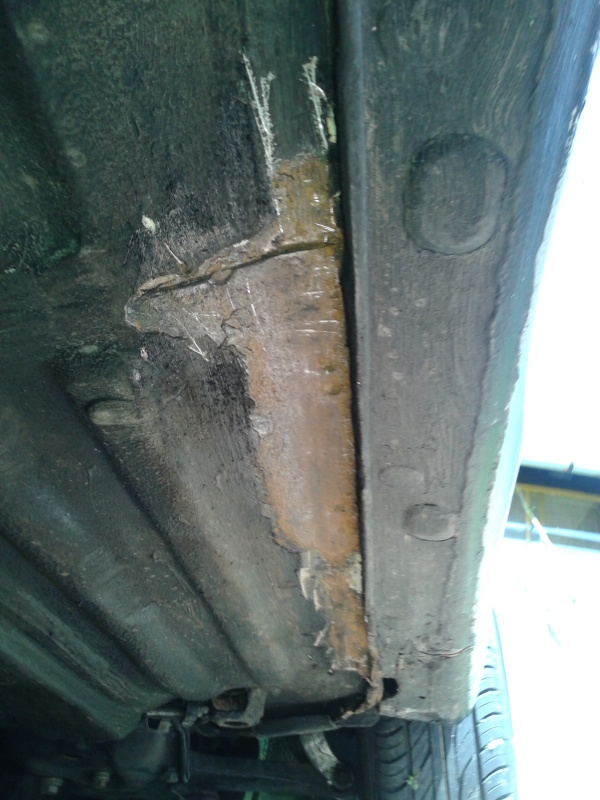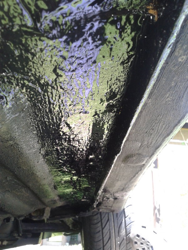 Dneska jsem pracoval na podvozku. Byla to povětšinou liška co šla dolů drátěným kartáčem, pak sem to vzal okolo až ke zdravýmu plechu. Celkem to bylo tak 8x40cm nehorší za kolama, kde je to vystavený odlétavajícímu bordelu. Dvakrát přetřený Hammeriten na rez a dvakrát nátěrem na podlahy Presto, ještě by to sneslo jednu dvě vrstvy tak možná zítra...Snad jsem tim trochu prodloužil životnost podlahy...