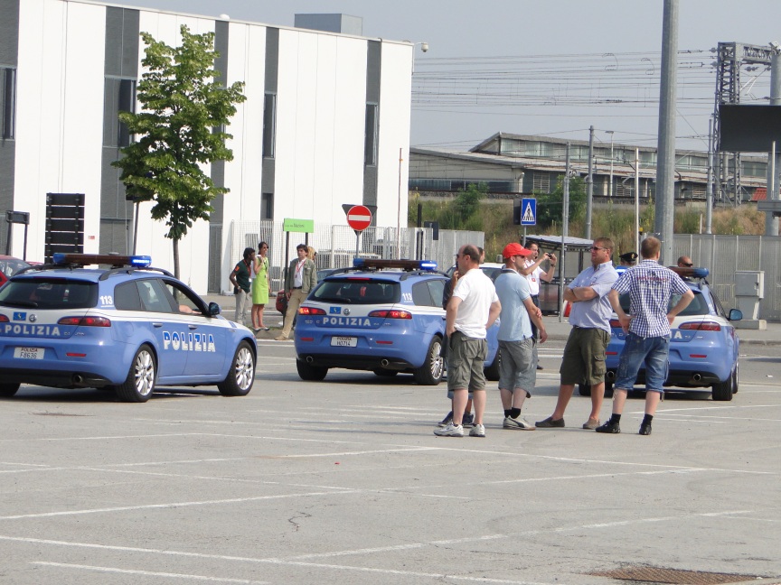 Eccellente.Carelo a Marcelo se na proslunenem mega parkovisti a v hale oslav seznamuji s Kubasem a Georgem.KHE.Timto okamzikem jsme vstoupili na posvatne pude Milana do gangu AlfistiCZ .