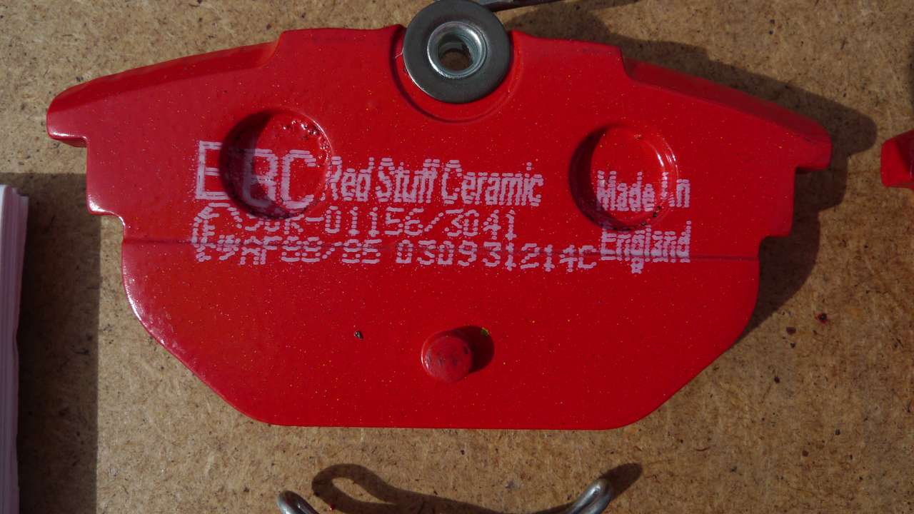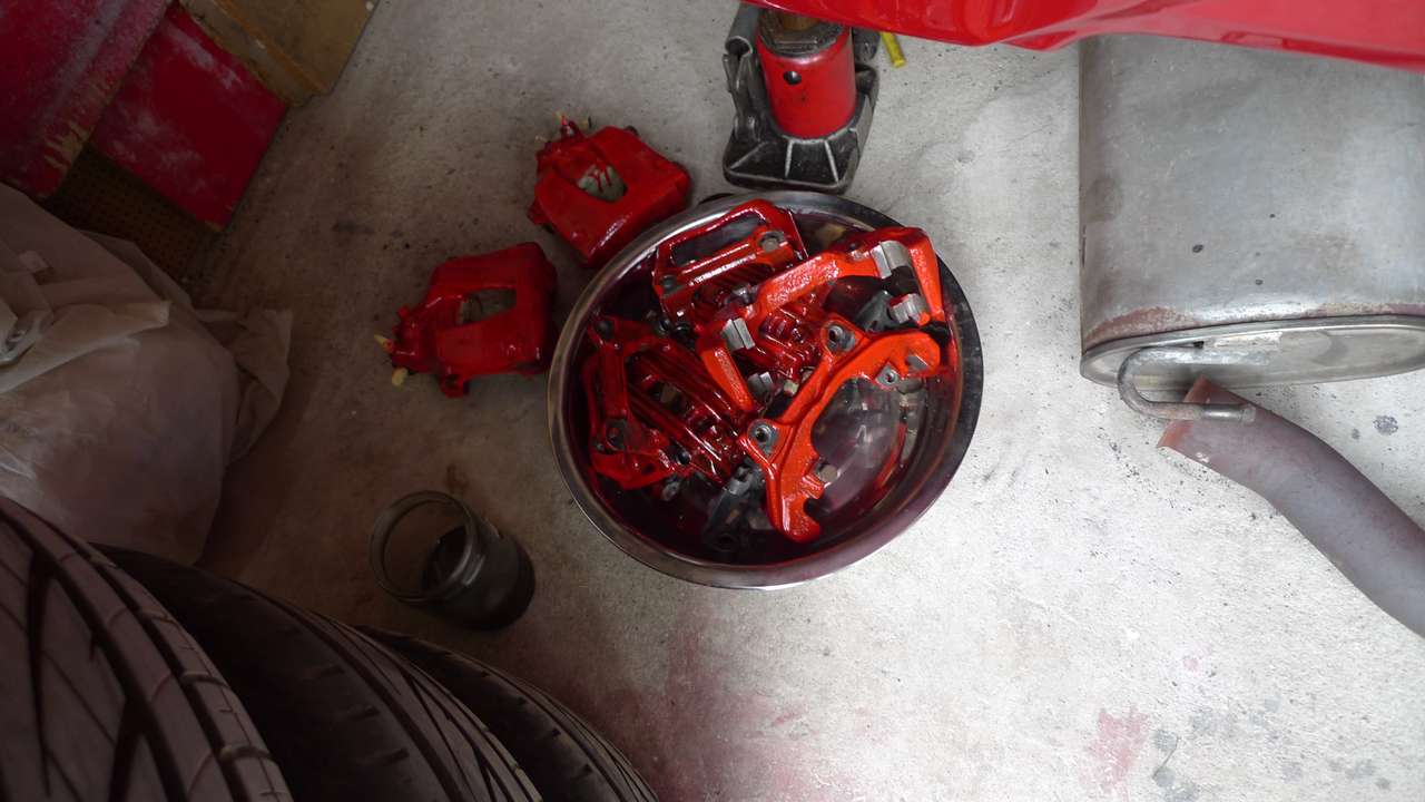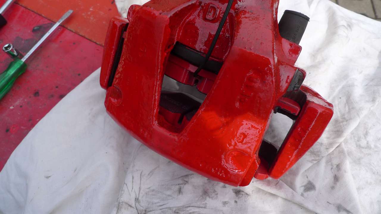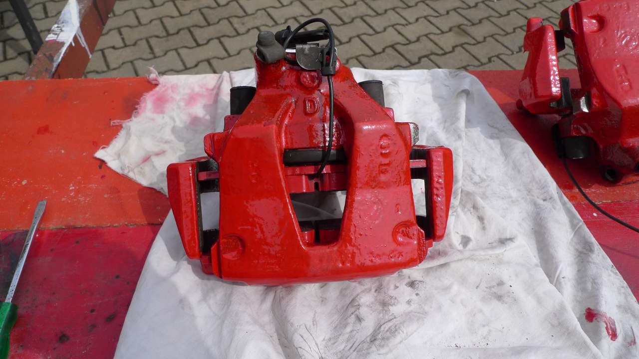 v patek odpoledne zakoupene brzdove komponenty: komplet EBC desky red stuff a kotouce USR na obe napravy + brzdovka DOT-4. Nabarveny treny dvouslozkovou barvou, vsude 2x, na viditelnych mistech 3x (bylo ji malo, ale ochrana dvema vrstvama bohate staci, sice malo kryje, ale bylo v ni dost laku, takze trmen je dobre pokryt). Na desky nalepeny prilozene (antivibracni) gumy (ci co to je). Samozrejmosti je perfektni pohyblivost vsech casti. V zadnich brzdach navic vymeneny vodici tycky a doplnena spravna vazelina (mel sem opravnej set ze 145ky - na spideru je to stejne)...