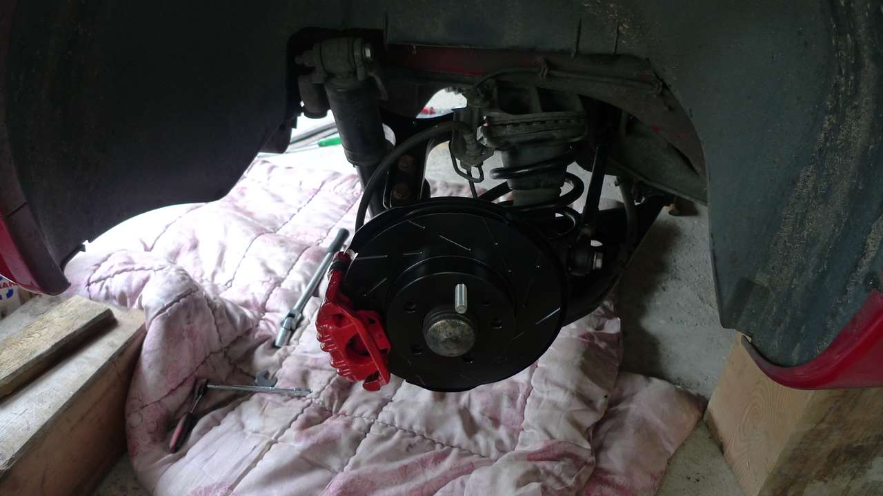 Pred 14 dny sme auto postavily na spalky a vyndali brzdy vsude a zadni ramena. Diky Kurkynovi sme vylisovali stare silentboky a unibaly (foto z teto casti nemam)...