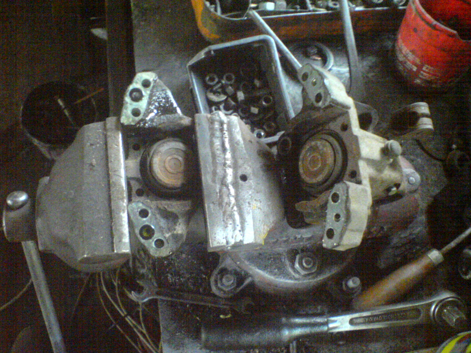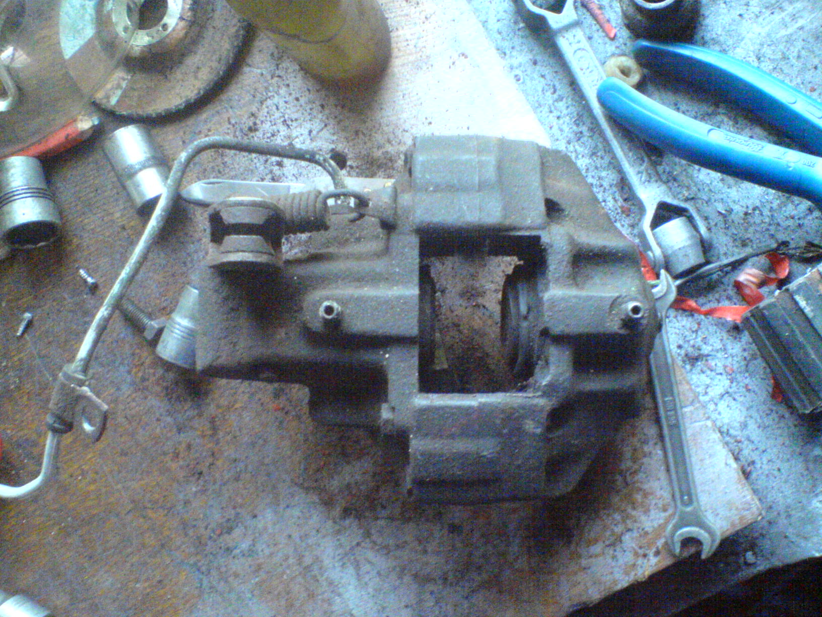 takže jsem vzal starší třmen a pokusně jsme ho rozebral, ale bohužel jsem se zasekl na segrovce (zrovna tu co drží ten stavěcí šroub a bez toho se nehnu- kolik asi stojí novej třmen????