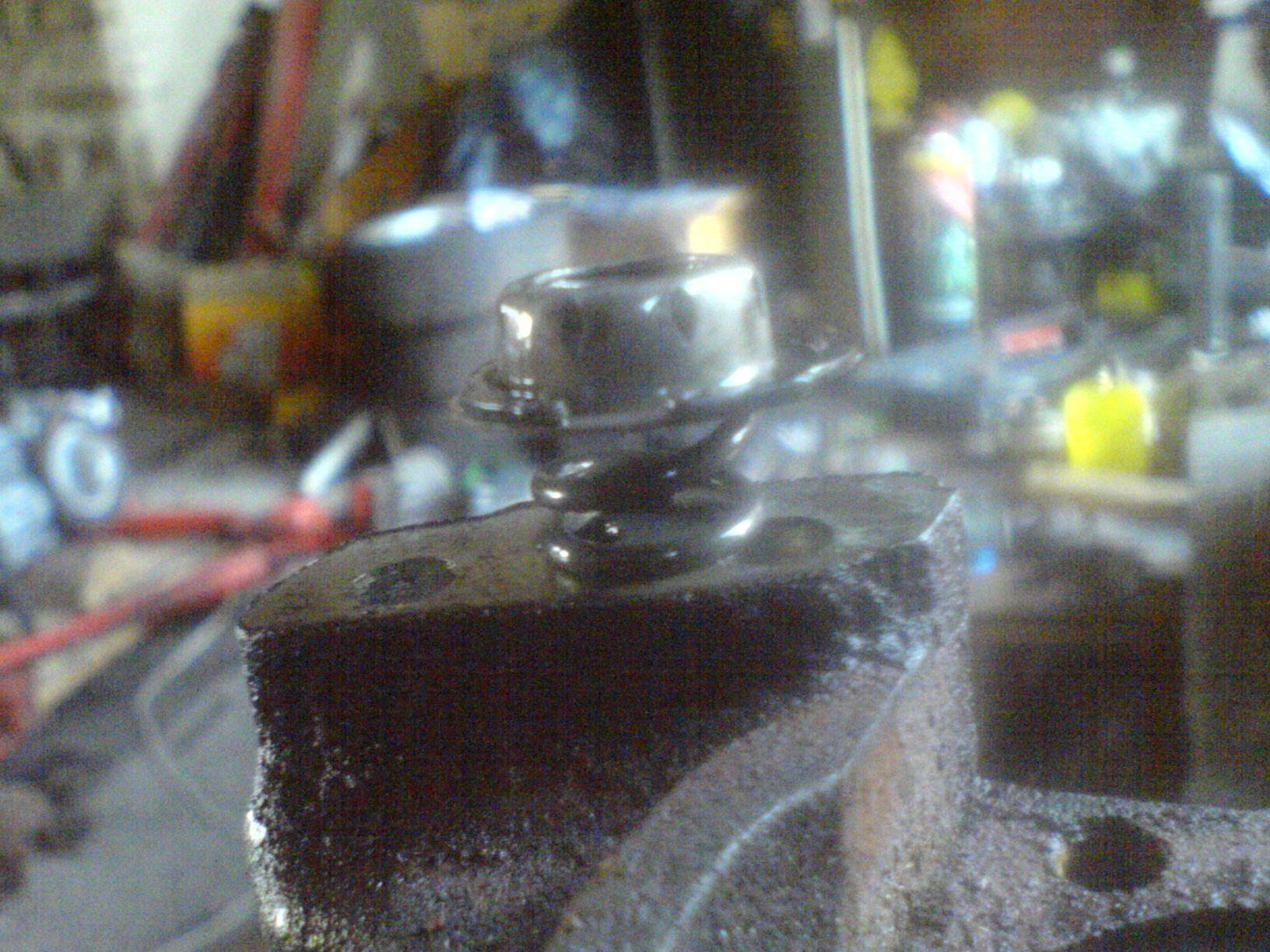 takže po dotáhnutí brzdových kotoučů na převodovku jsme si pomáhal přitažením brzdových destiček a zjistil jsem milou věc a to, že mi teče brzdová kapalina kolem seřizovacího šroubo