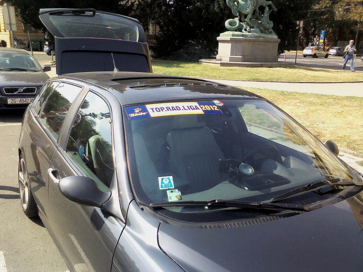 Tak alficka uz spinka v Zagrebu hned u naseho apartmanu. Nalozena byla opravdu az po strechu. Takze z lidi se vesel pouze ridic a spolujezdec. Celou cestu bylo vedro jak v prd.takze klimoska jela celou cestu. Po 510km jsem dotankovaval 32l. Jel jsem vicemene predpisove,rychlost na dalnici 140km/h tacho obcas se to vyhouplo na 150kdyz se to rozjelo z kopce.