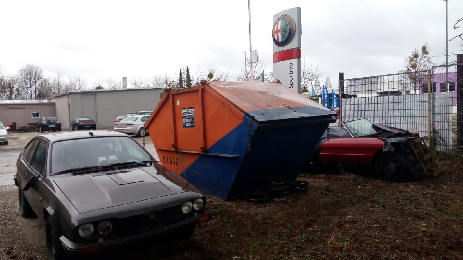 ožitím tohle vlákno o autorizácích.... tohle jsem si vyfotil o víkendu u AR v Mnichově.... hned za vjezdem do areálu autorizáku.... lahůdka.... Jinak showroom byl teda safra neformální, Stelvio ani jedno, ale měli tam 4C Spider, dvě Giulie (z toho jedna QV) a spoustu veteránů.... čili jako pěkný, ale spíš než ofiko zastoupení automobilky to vypadalo jako u nějakýho bohatýho fandy....