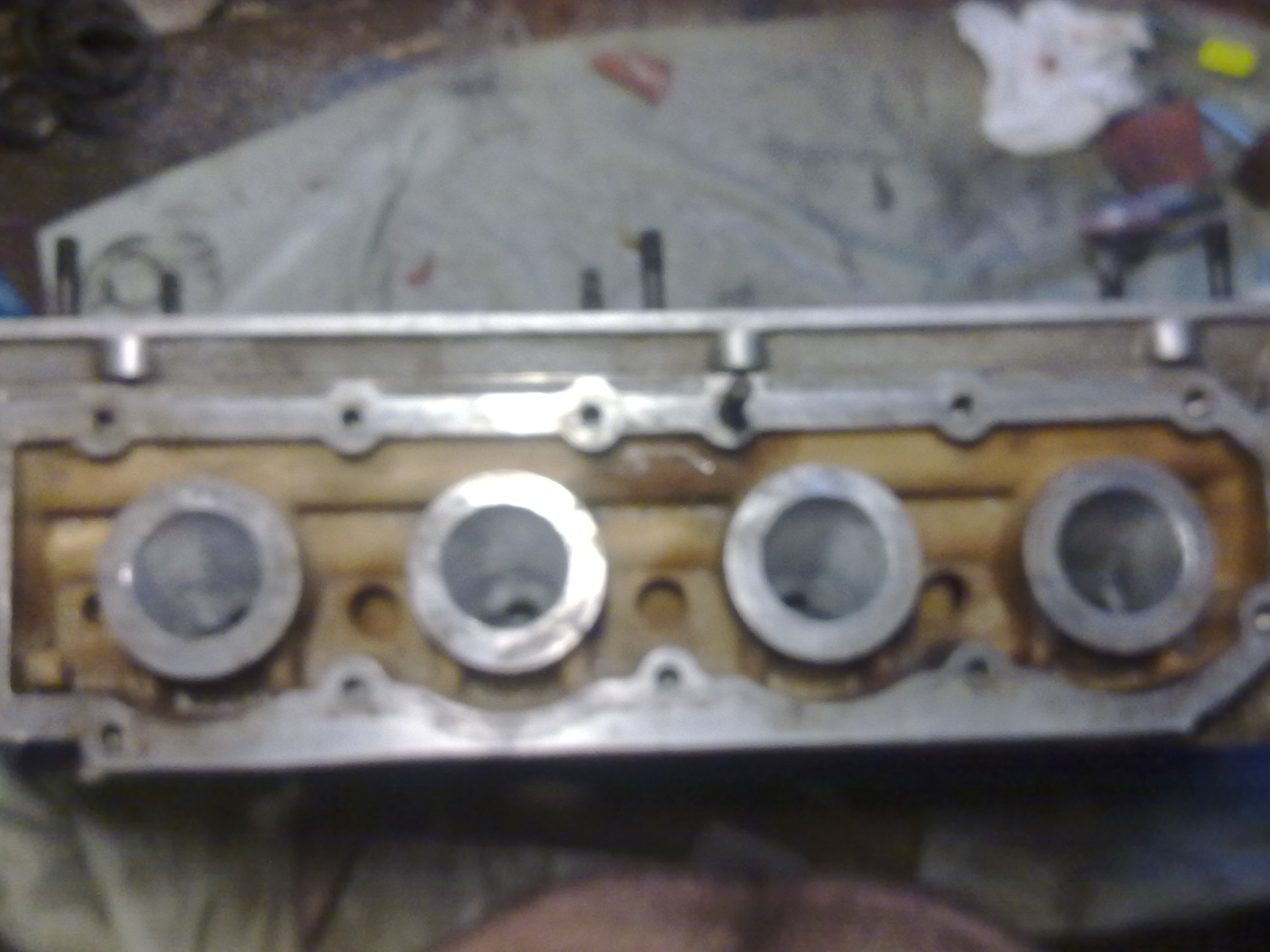 Dále jsem postupoval podle knížky - asi 20 hodin jsem strávil na zvětšování sacích a výfukových kanálů -v principu jde o zvýšení průtoku kanálu tím, že se brousí horní polovina kanálu a odstrní se nálitky (npříklad vrstva materiálu která tvoří stěnu mazacího kanálu a dosti ční v sacím kanálu. Dále nálytek pro vodítko. Další úpravou bylo stržení mezi sedlem a psalovací komorou - s serii je tam malý jakoby trychtýř, který usměrňuje tok směsi -je to kvůli emisím, aby při střihání ventilů neunikala čerstvá směs. Dále jsem leštil spalovací komoru včetně dírečk pro svíčky, spasování sací příruby a svodů. Pan Štráchal následně vyměnil vodítka a gufera, hlavu osadil, zabrousil ventily a sedla (pořád jsem od něj chtěl nějakou úpravu ventilů a sedel, nakonec z něj vylezlo, že to udělal jako na superbiku - tak nevím co si o tom myslet :-)) a nastavil vůle.