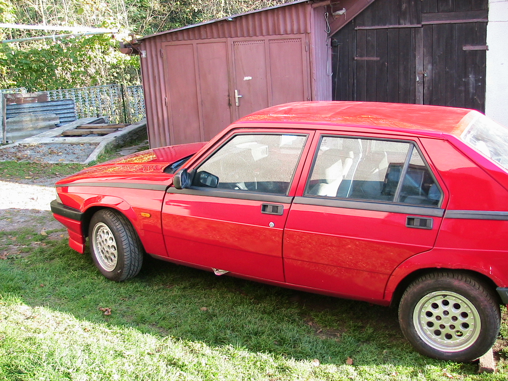 Jako tahle strana už je notně vybledlá a ten přední blatník taky nemá moc trefenej odstín. Kde ta barvy vypadá origo je uvnitř kufru. Navíc podvečerní slunce..