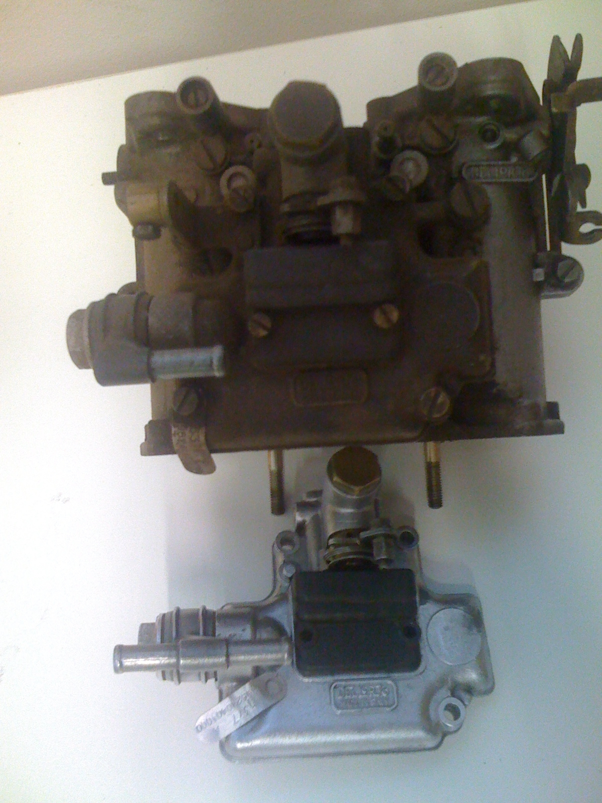 Takže na fotce je "stav 0" a pak dávám foto již odmontovaných karbců (ty chci určitě kompletně zrenovovat, ať už pro ten motor samotný nebo pro Spidera). Jenom vyčištění těch karbců je na pěkných pár hodin, na zimu ideální :smt033 Jinak když máte motor mimo auto, tak jsou takové primitivní práce velice zábavné.... ke všemu je dobrý přístup a ty odlitky prostě vypadají jak malá umělecká dílka :smt023 (a až nebudu vědět co s tím, tak zavézt Kůrkynovi se to dá vždycky :wink: )