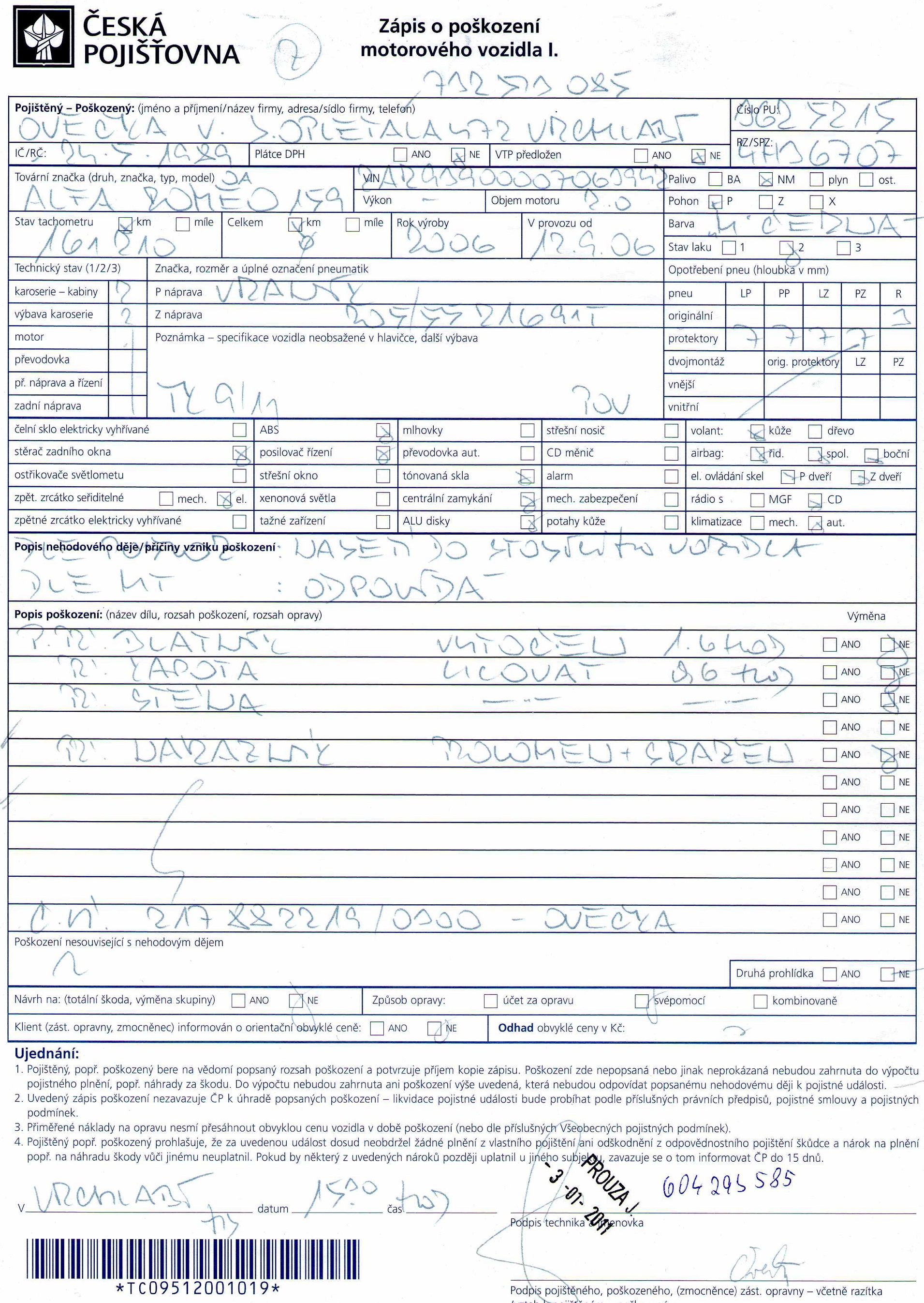 Jinak nam pojistovna ohodnotila cenu opravy na 7000 kc takze to tak +- sedi nemame praskly naraznik takze to necham za dvojku opravit a zbytek poslu do napravy neco zacina tukat na pravem prednim kole.