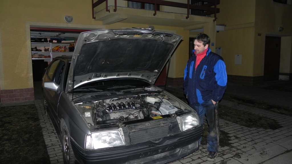 Určitě to bude stejné, mohl bys mi to třeba nějak poslat za úplatu? S těma klapkama je to oser, ale nějak to půjde opravit. To momentálně neni to njehorší. Dnes jsem dovezl od Davida ty originál liťáky, co byly na na té černé. Na auto jsem je dnes ale nestačil dát. Objevili se první problémy. Nalil jsem Vervu 95 ale stejně potvora ne a ne chytnout. Krásně točila, ale jen občas poblafla a nic... Po celkém dlouhém laborování jsem si na pomoc pozval Davida. Cívka dává, benzín tam jde pod správným tlakem (zdi garáže o tom něco ví), kabely pálí až ke svíčkám. Takže jsme v mé super "vybavené" garáže (z nářadí tam mám jen plochý šroubovák