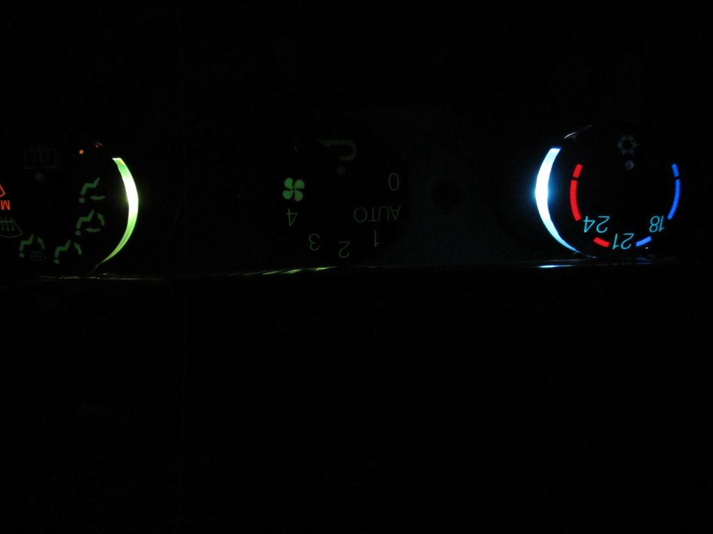 Stačí koupit LED Diody průměr 3mm a nahradit je místo původních. V autě jsou originálně led diody zelené s odporem pro 12V, takže je to práce skoro výměna kus za kus. Občas je tam něco, kde se musí trochu led upravovat (ovládací kolečko pro náklon a ovladač na zpětné zrcátka).