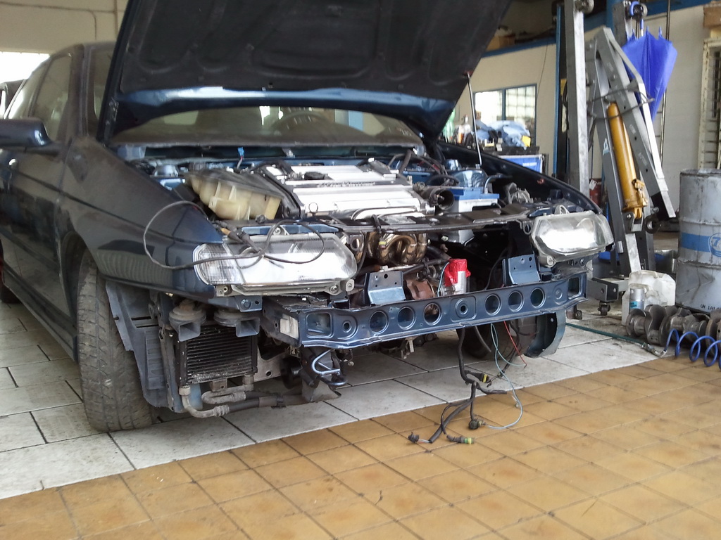 Takže další info: motor a podvozek je kompoletní. Poloosy jsou použity 16VT, klouby jsou upraveny tak aby se vešli do původních nábojů - půjdou použít pak komplet 6-ti pístkové brzdy a podvozek XYZ, které se budou montovat v průběhu kompletace auta.