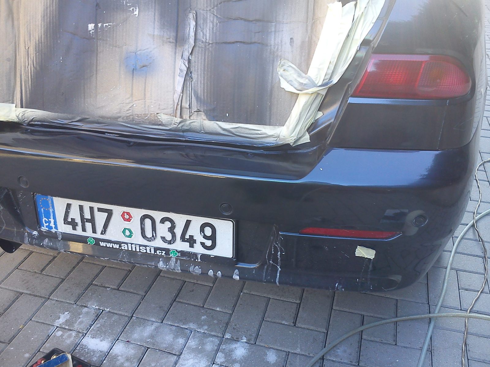 Takže dnes jsem se dokopal konečně k tomu že jsem vzal střík. pistoly a šel konečně udělat repásky na alfonzovi. Zadní nárazník jsem měl zvrchu pod víkem prasklý od předchozího majitele nechal jsem ho svařit, pak pod zad. skupinovkou jsem měl takovou deformačku bohužel musela se lakovat, no a nakonec ještě ten odřený přední nárazník z podzemní garáže v Itálii. byla to celodenní práce, teď už jen uschnout a rozleštit rozstřiky. Fotly jsou z mobilu tudíž kvalitu moc nehledejte.