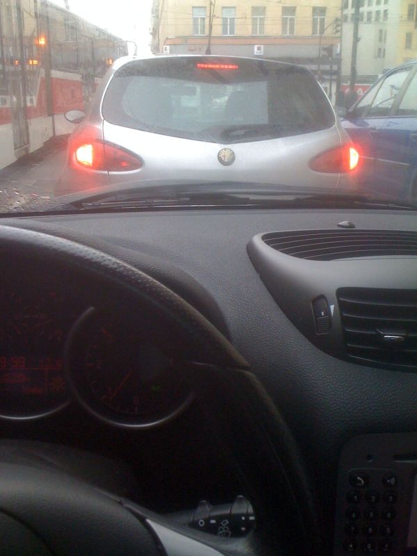 Za nim jela jeste stribrna 159SW s nejakym reklamnim napisem. Skoda, ze sem nejel aflou. Jo a tu 156 sedan co stavala v Pocernicich na hlavni u prechodu uz asi nekdo odvezl/odcizil...
