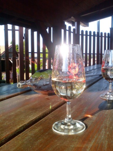 Když jsem byl ve sklepě poprvé, chcalo a byla tma. Až dnes jsem si všiml, jaký krásný výhled na panoráma Pálavy od sklepa je.