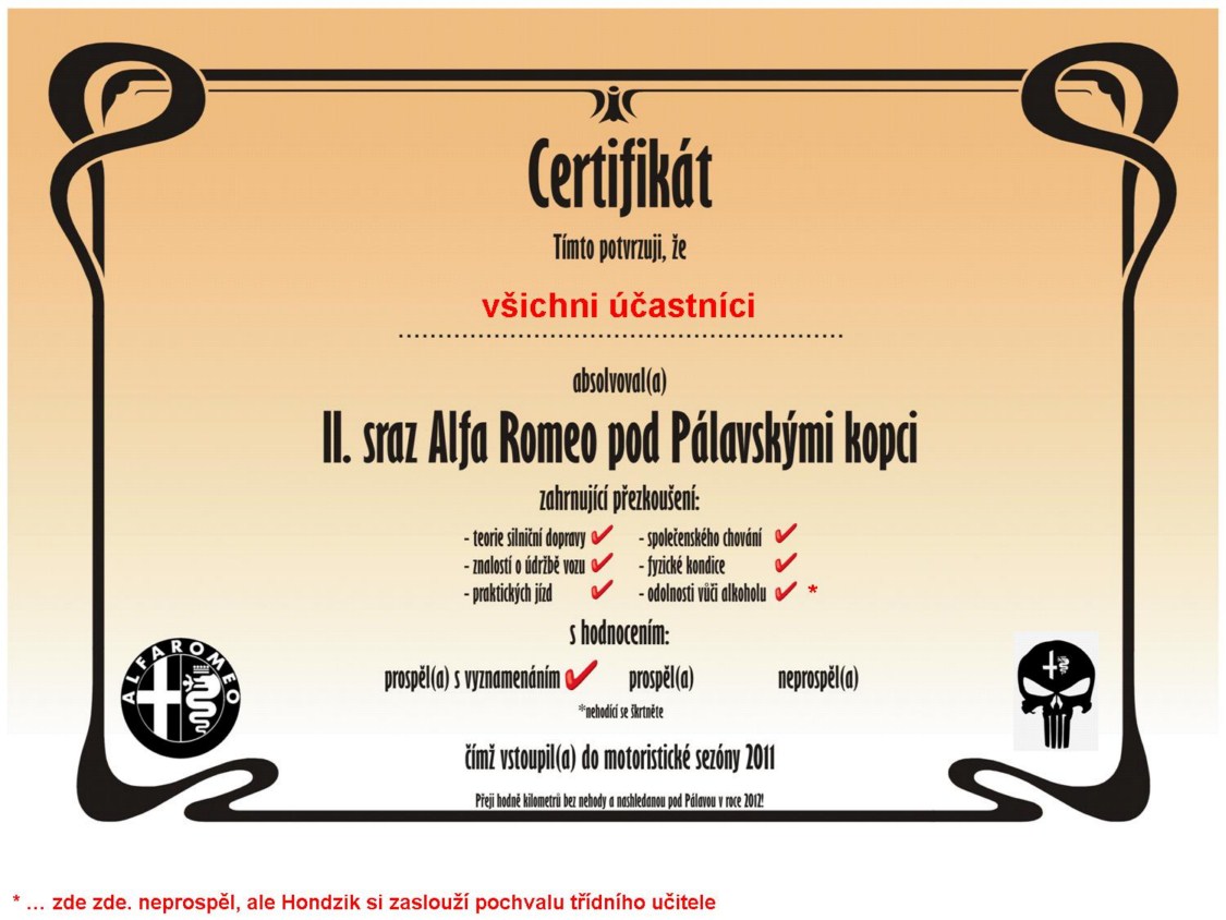 , protože starostí a lítání bylo určitě dost. Certifikát jde do síně slávy. Díky lidi, zase příští rok tady u nás na jižní Moravě čus. Jo a díky za videa a fotky