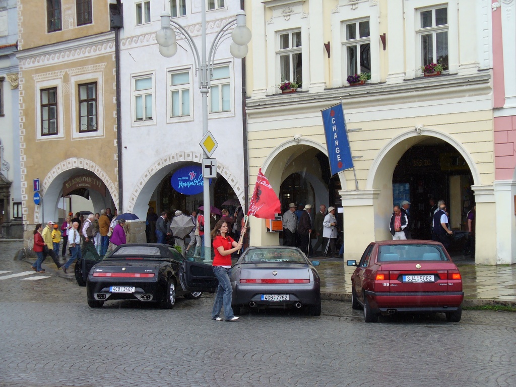 To už je větší škoda že se ta kolona roztrhala při přejezdu po Budějovicích. Ale ono je to už fakt velký město se semaforama a tam se nedá nic dělat. Metoda kterou sme praktikovaly při jízdách s Ford Sierra klubem, a to sice že když se přijíždělo k hlavní silnici, tak ten kdo byl v čele vjel do křižovatky, zablokoval jí, nechal projet kolonu a pak se zařadil na konec, fungovala ve městech velikosti Náchod, Holice apod. ale v těch Budějovicích už by to byl asi problém