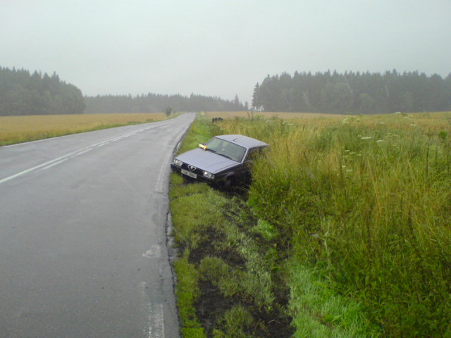 klasická chybka ze zadohrabem- ubrání plynu v zatáčce, jel jsem cca 90