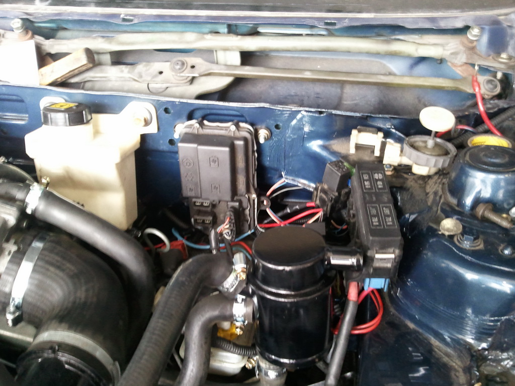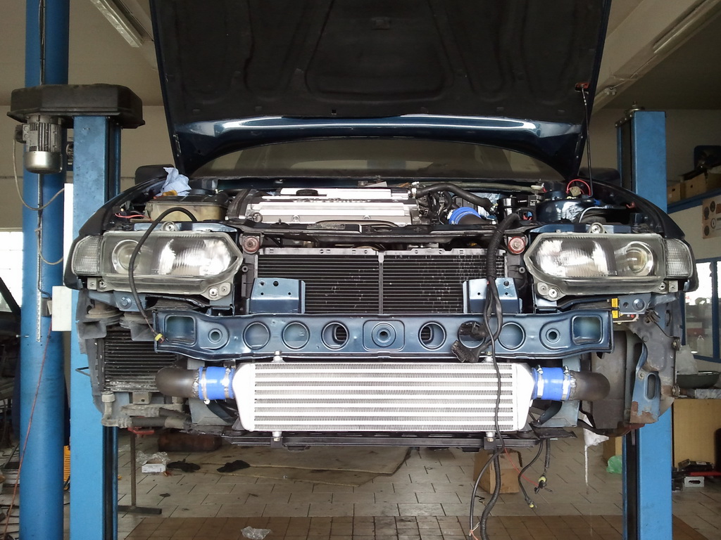 Nyni probiha "ucesani" kabelaze v motorovem prostoru - nove prichytky, husi krky atd. Zbyva jeste rozmerit si potrbubi od vzduchoveho filtru k turbu coz by melo probehnout zitra az pujde auto na zvedak na kontrolu zda jeste nekde neco neunika a pak uz by nic nemelo branit tomu zacit zajizdet motor a prvni kilometry .