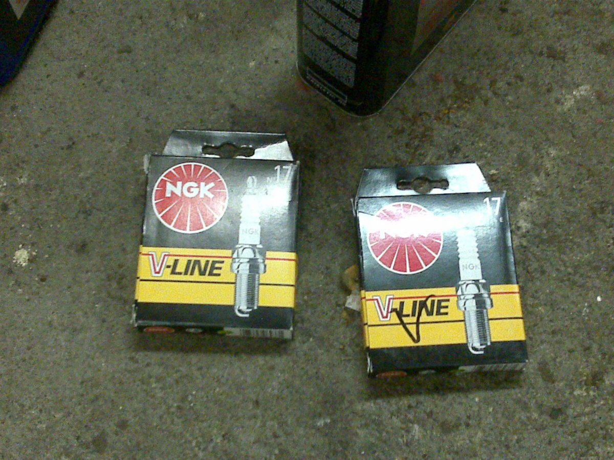no a když jsem už byl v tom vyměňování, tak jsem zkouknul i svíčky, protože občas měla bestie tendenci si trošku cuknout, a nebyly už nejlepší, takže jsem dal nový a motor si krásně ševelí.